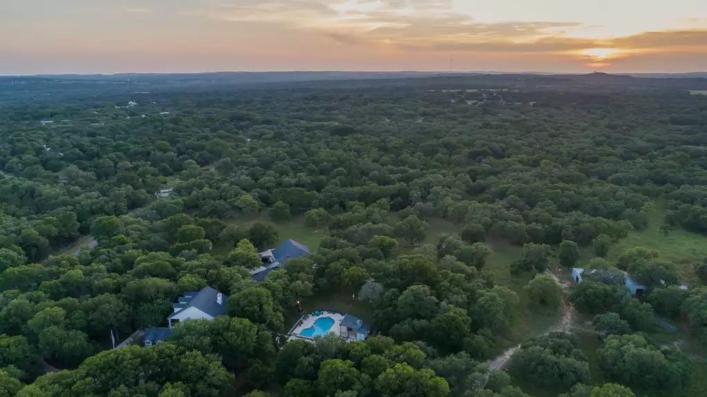 Situated on 55 gorgeous hill country acres, this property presents a stunning impression. Consisting of Main House (8/5) and Guest House (2/2) with custom moldings, soaring ceilings and rich hardwood floors are embellished by designer lighting fixtures and massive walls of arch-topped windows. Living areas are bright and spacious. The atmosphere is casual elegance.