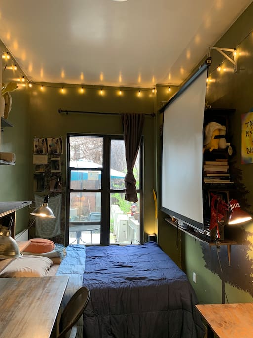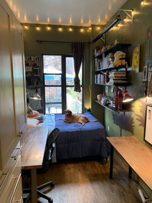 Fully private furnished room with closet and ample shelving available from 12/15/22-1/15/23! Our apartment is the full first floor and private backyard of recently renovated building right behind Myrtle and Broadway in Bushwick. The apartment is six bedrooms with 1 full and 2 half bathrooms, full refrigerator, electric stove, in unit washer/dryer & HVACs in each room. We're 4 roommates living with a 2 friendly cats (Colton & Mete Mete) and a sweet dog (Nancy Drew)