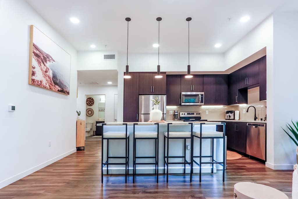 This 1100 ft² unit offers a fully equipped premium apt with a pool, rooftop lounge and fitness center great for both short and extended stays . Located near Hollywood’s famous attractions like the Walk of Fame, Universal Studios and the Hollywood Bowl, you’ll have the best of LA at your doorstep.