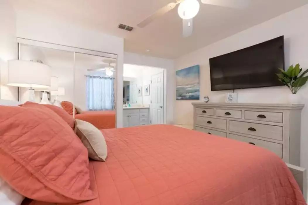 2 bd /2 ba condo offers an open floor plan which intermingles the kitchen, dining, and living area offering a place for your whole group to hang out together. Very spacious at 900 Sq ft.