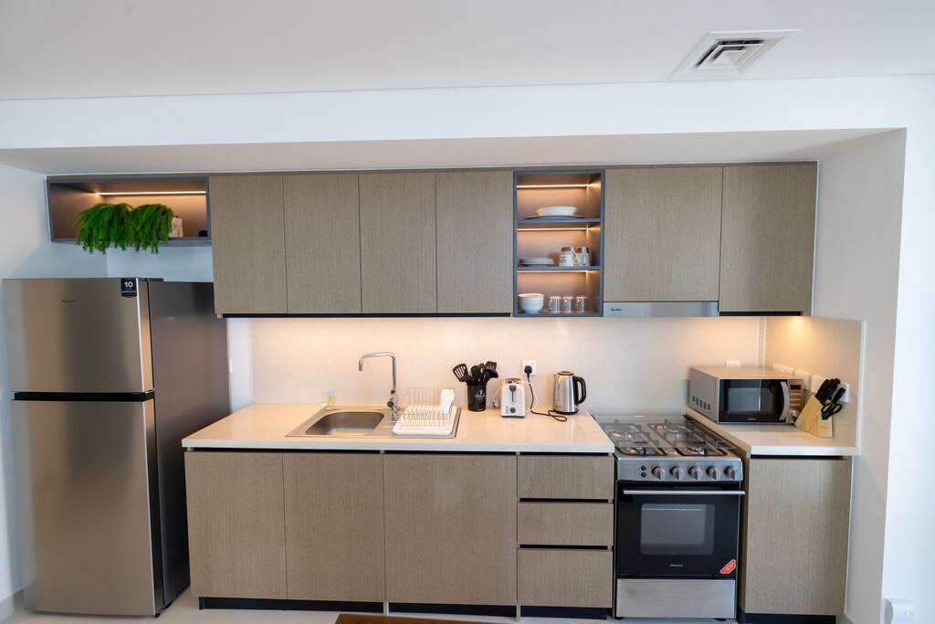 Enjoy a stylish experience at this centrally-located place. Along with fascinating panoramic views of Burj Khalifa, this stunning apartment provides the utmost comfort and luxury for an unforgettable experience.