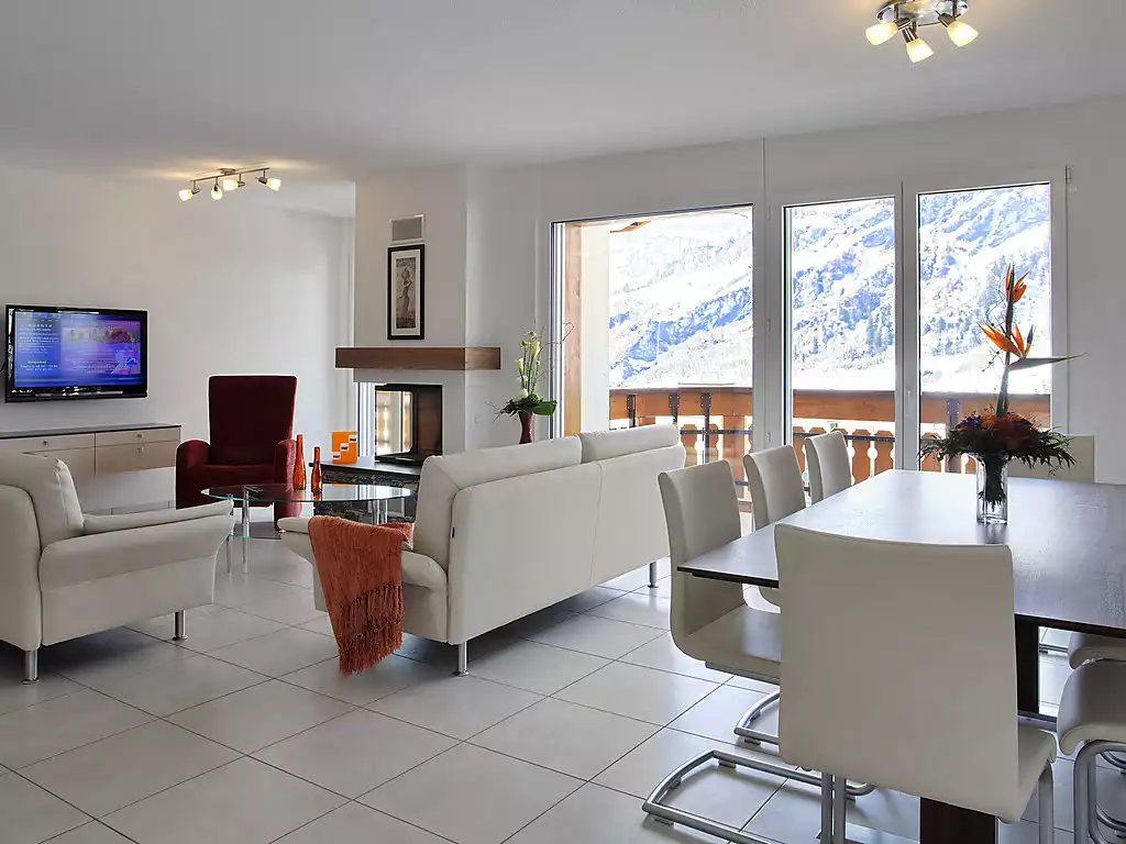 Comfortable apartment block "Iris A", 4 storeys, built in 2008. In the resort, in a central, sunny, elevated position, located by a road. In the complex: sauna, fitness room, steam room, hot tub, lift, central heating system, washing machine, tumble dryer (for shared use, extra). Communal covered parking. Shop 400 m, restaurant 200 m, bar, café 400 m, bus stop "Leukerbad, Obere Maressen" 250 m, thermal baths 400 m. Skisport facilities 600 m, ski bus stop 150 m, ice rink 1 km. A fitness and relaxation chalet is available to all residents among Iris houses. Relaxation area with Finnish sauna, aroma steam bath, hot tub. The Leukerbad Card Plus is included in the reservation. The Leukerbad Card Plus includes the following services: free use of Ringjet local bus, free access to the ski area for children Erli, free use of the sports center (badminton, tennis, squash, billiards, table tennis, skating, football, indoor football, mini-golf, boulder, etc.), 15 % discount on the purchase of pass and snow bath. 10% discount on subscriptions and the multiple entry tickets to public baths."A31", 5-room apartment 157 m2 on 3rd floor. Comfortable and tasteful furnishings: living/dining room with open-hearth fireplace and cable TV. Exit to the balcony, south facing position and west facing position. 1 double bedroom with 2 beds and shower/WC. Exit to the balcony, south facing position and west facing position. 1 double bedroom with 2 beds. Exit to the balcony, south facing position and west facing position. 1 double bedroom with 2 beds and shower/WC. 1 double bedroom with 1 double bed and shower/WC. Open kitchen (oven, dishwasher, 4 ceramic glass hob hotplates) with bar. Bathroom, sep. WC. Very beautiful view of the mountains and the resort. Facilities: washing machine, dryer, children's high chair. Internet (WiFi, free). Parking (roofed). Please note: non-smokers only.