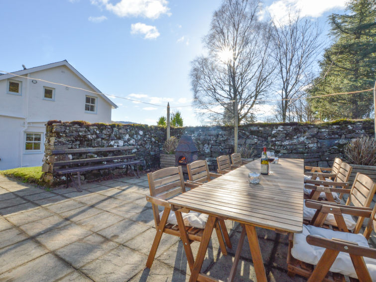 9 km from oban: Very large, beautiful farmhouse "Achalic Farm House", 2 storeys, detached, surrounded by fields. In a secluded, sunny position, in the countryside. Private: garden trees. Hot tub, patio, garden furniture, barbecue. In the house: table tennis, billiard table, playroom, table football, central heating system, washing machine, tumble dryer. Motor access (via unmade road). Parking at the house. Shop 7 km, grocery 7 km, supermarket 7 km, restaurant 4 km, bar 4 km, bus stop "Bus Depot" 6 km, railway station "oban" 8 km, ferry "Oban - Isle of Mull" 7 km, sandy beach "Ganavan Sands" 10 km. Golf course (18 hole) 7 km. Nearby attractions: Firth of Lorn 5 km, Oban Distillery 7 km, Dunollie Castle 13 km, Arduaine Gardens 18 km. Please note: car recommended. Baby equipment on request.7-room farmhouse 201 m2 on 2 levels. Fully renovated, modern and stylish furnishings: large living room with digital TV and wood-burning stove. Exit to the garden. Dining room with heating stove. 1 double bedroom with 1 double bed and shower/WC. Large kitchen (oven, dishwasher, kettle, microwave, freezer, electric coffee machine). Sep. WC. Oil heating. Top floor: 2 double bedrooms, each room with 2 double beds and shower/WC. 2 rooms, each room with 2 beds. 1 room with bath/shower/WC. Large patio, large garden. Terrace furniture, barbecue, sitting area. Beautiful panoramic view of the countryside. Facilities: washing machine, dryer, iron, children's high chair, baby cot for up to 2 year olds, hair dryer. Internet (WiFi). Parking at the house. Please note: suitable for families. Non-smoking house. Maximum 2 pets/ dogs allowed. TV only EN.