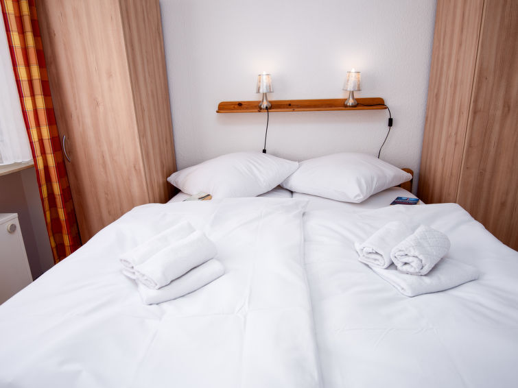 Apartment block. In the resort, 100 m from the sea, 100 m from the beach. For shared use: patio, children's playground. In the house: central heating system, washing machine (extra), tumble dryer (for shared use, extra). Parking at the house. Supermarket 1.8 km, restaurant 100 m, bakery, café, bus stop 800 m, railway station "Norddeich" 1.2 km, ferry 1.2 km, sandy beach, outdoor swimming pool 14 km, indoor swimming pool 600 m. Golf course (18 hole) 8 km, surf school 400 m, tennis 2.5 km."Achtern Diek", 3-room apartment 55 m2, on the ground floor. Object suitable for 2 adults + 2 children. Cosy furnishings: living/dining room 18 m2 with satellite TV (flat screen), hi-fi system. Exit to the terrace. 1 room 8 m2 with 1 double bed (2 x 80 cm, length 190 cm). 1 children's room 5 m2 with 1 x 2 bunk beds (90 cm, length 180 cm). Kitchenette (oven, 4 ceramic glass hob hotplates, toaster, kettle, microwave, electric coffee machine). Shower/WC. Small terrace. Terrace furniture. Facilities: children's high chair (extra). Internet (WiFi, free). Please note: non-smokers only. Smoke alarm. The bunk beds are only suitable for children up to 10 years old.