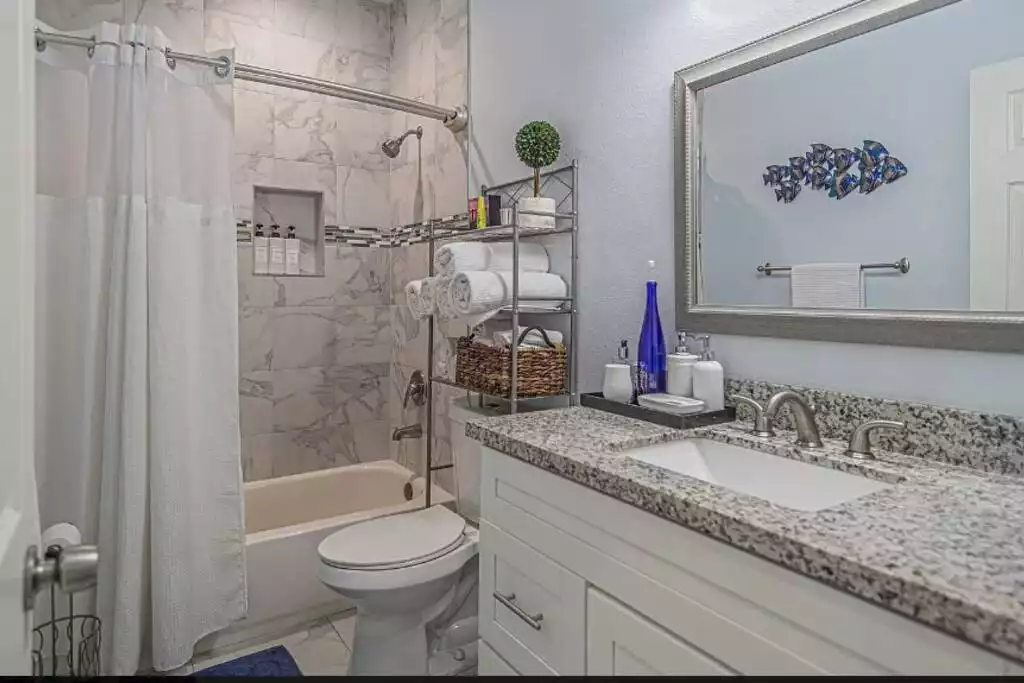 Tastefully decorated, light & bright, built in 2017. Well equipped kitchen so you can dine in if desired: various appliances and utensils including drip coffee maker, Kuerig, coffee grinder, blender, juicer, veggie chopper, crockpot, and popcorn maker. Cook on the charcoal grill downstairs. Sit on one of the outdoor upper decks (North and South ) or patio below. Hot/cold outdoor shower to rinse the salt and sand away. (Use the Beach chairs near the shower if heading to the beach). Wi-Fi in living areas; Enjoy some TV favorites on the smart TV in the living area by accessing your personal accounts for Netflix,Prime, etc.