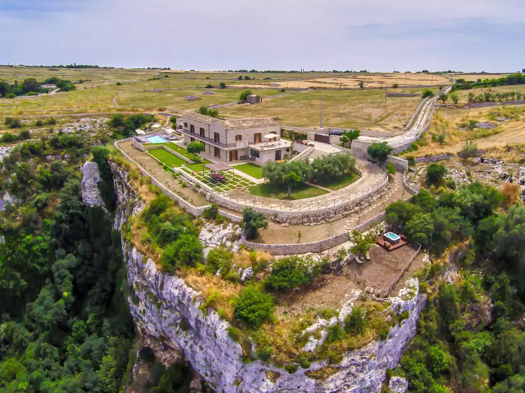 Large villa "al Castello". Property composed of main house and outbuilding 10 km from the centre of Modica, in a quiet, sunny, elevated position, 15 km from the sea, 15 km from the beach, in a cul-de-sac. Private: property 2'300 m2 (fenced), large garden, swimming pool (4 x 8 m, depth 130 cm, seasonal availability: 01.Apr. - 31.Oct.). Outdoor shower, hot tub, patio, garden furniture, barbecue. Available: bicycles (3). House maid on request (extra). Public parking on the road. Grocery 6 km, supermarket 6 km, restaurant 6 km, bar 6 km, bus stop 4.5 km, sandy beach "Pozzallo" 15 km. Nearby attractions: Pozzallo 16 km, Scicli 19 km, Noto 33 km, Portopalo di Capo Passero 40 km, Siracusa 68 km, Caltagirone 84 km. Well-known ski regions can easily be reached: Etna Sud Punto partenze Rifugio Sapienza 155 km. Well-known lakes can easily be reached: Ris. Naturale Laghetti del Cassibile 63 km. Hiking paths: Ris Naturale faunistica di Vendicari 35 km. Please note: car recommended. The hot tub is available from 15 May to 30 September.9-room villa 300 m2 on 2 levels. Very comfortable furnishings: living room with satellite TV (flat screen). Exit to the garden, to the terrace. Dining room. Exit to the garden. 2 double bedrooms, each room with shower/bidet/WC and satellite TV (flat screen), air conditioning. Exit to the garden. Kitchen (4 hot plates, oven, dishwasher, microwave, electric coffee machine) with small dining table. Sep. WC. Heating (extra). Heating available only from 01.12. to 31.03. Upper floor: 2 large double bedrooms, each room with shower/bidet/WC and satellite TV (flat screen), air conditioning. Exit to the balcony, to the terrace. 2 large rooms, each room with 3 beds, shower/bidet/WC and satellite TV (flat screen). Exit to the balcony. 1 large double bedroom with shower/WC and satellite TV (flat screen). Exit to the balcony, to the terrace. Balcony 25 m2, terrace 15 m2, roofed, patio 15 m2, roofed. Terrace furniture, deck chairs. View of the valley. Facilities: washing machine, baby cot for up to 2 year olds, hair dryer. Internet (WiFi, free). Please note: one double bedroom is outside the apartment. Smoke alarm, fire extinguisher. The rooms have only external access, they come with mini fridge. IT088006B4TP885ZX6