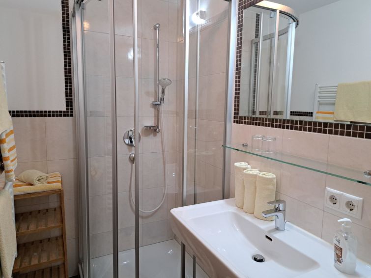 House "Alina". In the centre of Tux 800 m from the centre of Lanersbach, 7 km from the centre of Hintertux, 13 km from the centre of Mayrhofen, 50 m from the skiing area, on a main road. In the house: storage room for skis, ski boot dryer. Parking (for 2 cars) on the premises. Supermarket 800 m, restaurant 40 m, bakery 800 m, bus stop "Lanersbach Eggalmbahnen/Tux" 87 m, railway station "Mayrhofen Bahnhof" 12.1 km, outdoor swimming pool 10 km, indoor swimming pool 2 km. Golf course (18 hole) 30 km, mountain railway 40 m, ski lift 1.5 km, slopes 50 m, ski bus stop 40 m, ski school 800 m, cross country ski track 200 m. Well-known ski regions can easily be reached: Zillertal 3000/Eggalmbahn 40 m, Hintertux 7 km. Please note: object suitable for 6 adults + 2 children. Ski bus (free of charge). In case of good snow conditions, the house is accessible on skis."Haus Alina", 3-room apartment 80 m2, on the ground floor. Bright, practical furnishings: 1 room with 1 bed, 1 double bed and shower/WC. 1 room with 1 bed and 1 double bed. Kitchen-/living room (oven, dishwasher, 4 ceramic glass hob hotplates, toaster, kettle, microwave, electric coffee machine) with 1 double sofabed, dining nook and satellite TV. Shower/WC. Heating. Carpet. Terrace roofed. Terrace furniture. Facilities: children's high chair, baby cot. Internet (WiFi, free). Please note: non-smokers only. Smoke alarm, fire extinguisher. When there are less than the maximum number of guests staying at the property, not all of the bedrooms will be available for use.