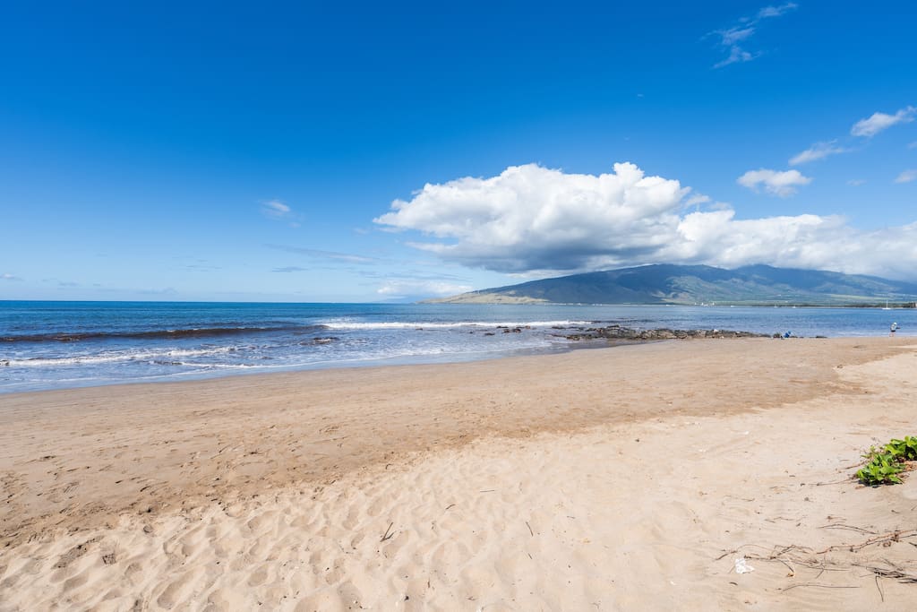 This gem—steps from the beach—is tucked away from the hustle and bustle of the city, yet remains close to everything. Whether you want to explore everything Kihei has to offer or enjoy a quiet night in, this condo is the place for you. And it’s only a 20 minute drive from the airport!