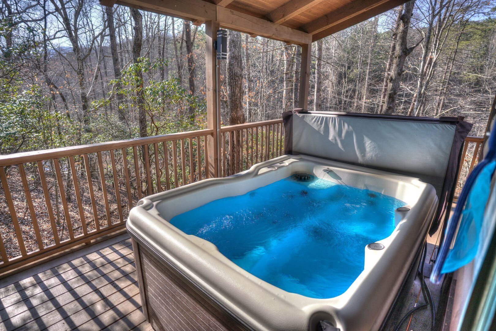 Imagine a beautiful luxury cabin, filled with radiant sunlight, tucked deep in the woods yet just minutes from your favorite adventures. Allure is the best of both worlds. If you’re seeking peace and tranquility, stand on the huge deck and all you will hear is rustling leaves and the gentle murmuring of the stream below. Take a walk down the terraced steps to visit the fire pit by the creek. Treat yourself to hydrotherapy in the outdoor hot tub or the indoor jacuzzi. When you’re ready for more action it’s a short drive to the popular town of Helen, with shopping, restaurants and entertainment galore. Two state parks are also close by, with endless hiking trails, boating, fishing and family activities.