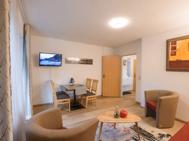 Apartment block "Alpenchalets". 2 houses in the residence. 5 apartments in the residence. In the district of Zellermoos 4 km from the centre of Zell am See, 5 km from the centre of Kaprun, 2.5 km from the lake, 900 m from the skiing area. For shared use: children's playground. In the house: storage room for bicycles, storage room for skis, central heating system. Shop 700 m, bus stop "Bhf Zellermoos" 600 m, railway station "Bhf Zellermoos" 600 m. Ski lift, gondola lift 900 m. Well-known ski regions can easily be reached: Areitbahn Zell am See 900 m, Maiskogel Kaprun 5 km."Alpenchalet", 2-room apartment 50 m2, on the ground floor. Renovated in 2019, cosy furnishings: living/sleeping room with 1 double sofabed, dining table and cable TV. Exit to the terrace. 1 room with 1 double bed (160 cm). Kitchen (dishwasher, 4 ceramic glass hob hotplates, toaster, kettle, microwave, electric coffee machine). Shower/WC. Parquet floors. Terrace. Terrace furniture. Facilities: children's high chair, baby cot. Internet (WiFi, free). Parking (1 car). Please note: 1 pet/ dog allowed. Fire extinguisher. 50628-001024-2020