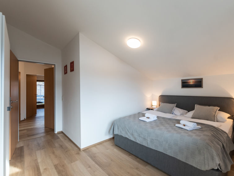 Apartment block "Alpenchalets". 2 houses in the residence. 5 apartments in the residence. In the district of Zellermoos 4 km from the centre of Zell am See, 5 km from the centre of Kaprun, 2.5 km from the lake, 900 m from the skiing area. For shared use: children's playground. In the house: storage room for bicycles, storage room for skis, central heating system. Shop 700 m, bus stop "Bhf Zellermoos" 600 m, railway station "Bhf Zellermoos" 600 m. Ski lift, gondola lift 900 m. Well-known ski regions can easily be reached: Areitbahn Zell am See 900 m, Maiskogel Kaprun 5 km."Alpenchalets", 5-room apartment 100 m2 on 1st floor. Renovated in 2019, cosy furnishings: 1 room with sloping ceilings with 1 double bed (160 cm). Exit to the balcony. 3 rooms with sloping ceilings, each room with 1 double bed (160 cm). Kitchen-/living room (oven, dishwasher, 4 ceramic glass hob hotplates, toaster, kettle, microwave, electric coffee machine) with dining nook. Exit to the balcony. 2 showers/WC. Electric heating. Parquet floors. Balcony. Balcony furniture. Facilities: children's high chair, baby cot. Internet (WiFi, free). Parking (2 cars). 1 pet/ dog allowed. 50628-001024-2020