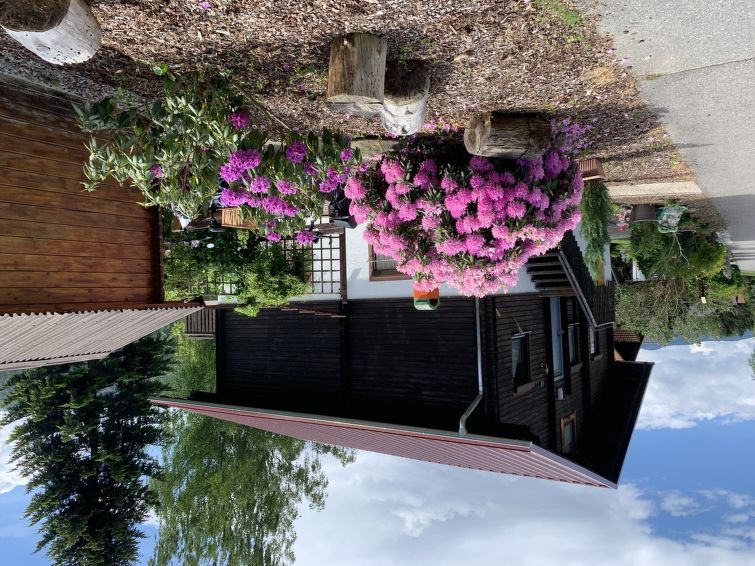 Child friendly holiday village "Am Hohen Bogen", 5 m a.s.l.. In the district of Kummersdorf, outside the resort, 3 km from the centre of Arrach, on a slope, traffic calmed area, 300 m from the edge of the forest, 100 m from the lake, 9 km from the skiing area. For shared use: volleyball, children's playground (slide, swing, sandbox). In the complex: table tennis (extra). Central heating system. Parking at the house. Shop 3 km, grocery 3 km, supermarket 3 km, restaurant 3 km, bakery 3 km, bus stop "Großmühle Abzw. Hohenwarth" 650 m, railway station "Hohenwarth" 1.5 km, grass beach "Seepark Arrach" 5 km, outdoor swimming pool 10 km, thermal baths 10 km, bathing lake "Seepark Arrach" 5 km. Golf course (9 hole) 6 km, tennis 6 km, riding stable 800 m, chair lift 9 km, skisport facilities 9 km, slopes 9 km, ski rental 11 km, ski school 9 km, cross country ski track 11 km. Nearby attractions: Bayerwald-Tierpark Lohberg 15 km, Spielbank Bad Kötzting, Fun-Park Neukirchen, Tiergarten Straubing, Pullman-City. Well-known ski regions can easily be reached: Eck 6 km, Am Hohen Bogen 9 km, Arber 29 km. Hiking paths: Arberregion. Please note: car recommended. Groups of teenagers on request only. Boating, fishing 500 m. The holiday village consists of an apartment house and two-storey holiday houses with shared lawns and play areas. The distance from the individual houses to the natural swimming lake is 50 – 400 m.3-room apartment 75 m2, on the upper floor. Cosy and wooden furniture furnishings: living room 35 m2 with satellite TV (flat screen). Exit to the balcony. 1 room 13 m2 with 1 double bed (180 cm, length 200 cm). 1 room 9 m2 with 2 beds (90 cm, length 200 cm). Open kitchen 9 m2 (4 hot plates, oven, toaster, kettle, microwave, electric coffee machine) with dining nook. Shower/WC. Gas heating. Large balcony 15 m2, patio. Balcony furniture, barbecue, deck chairs. Beautiful view of the mountains. Facilities: Internet (WiFi, free). Please note: non-smokers only. Maximum 1 small pet/ dog allowed. Private entrance, smoke alarm. Balcony partly covered. Lake 100 m. If you reserve additional bed, there is a sofabed in the livingroom at your disposal. Bookings accepted for holiday purposes only.