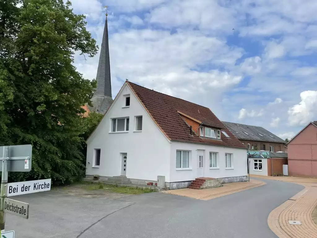 Large, modern apartment house "Am Ostedeich", renovated in 2022. In the centre of Oberndorf, in a central, quiet position, 15 km from the sea, 7 km from the lake, 15 km from the beach, directly by the river. For shared use: terrace, barbecue, parking at the house. Grocery 400 m, restaurant 20 m, bus stop 100 m, railway station 1.5 km, sandy beach 15 km, outdoor swimming pool 3 km, indoor swimming pool 3 km. Tennis 3 km, children's playground 300 m. Nearby attractions: Wingster Waldzoo 5 km, Badestrand Otterndorf 25 km. Well-known lakes can easily be reached: Kreidesee Hemmoor 7 km. Please note: Loading and unloading of baggage is possible at the holiday house.5-room apartment 145 m2, on the ground floor. Spacious, fully renovated in 2022, modern and stylish furnishings: open large living/dining room with dining table, cable TV and flat screen. Large living/sleeping room with 1 double sofabed, cable TV and flat screen. 1 room with 1 double bed (180 cm, length 200 cm). 1 room with 1 double bed (180 cm, length 200 cm), cable TV and flat screen. 1 room with 2 beds (90 cm, length 200 cm). Open kitchen (oven, dishwasher, 4 ceramic glass hob hotplates, toaster, kettle, microwave, electric coffee machine). 3 showers/WC. Heating. Facilities: Internet (WiFi, extra). Please note: non-smokers only. Smoke alarm. No internal connecting door between the separated properties. In addition, there is a second kitchen on the ground floor (oven, dishwasher, 4 ceramic hobs, toaster, microwave, electric coffee machine).