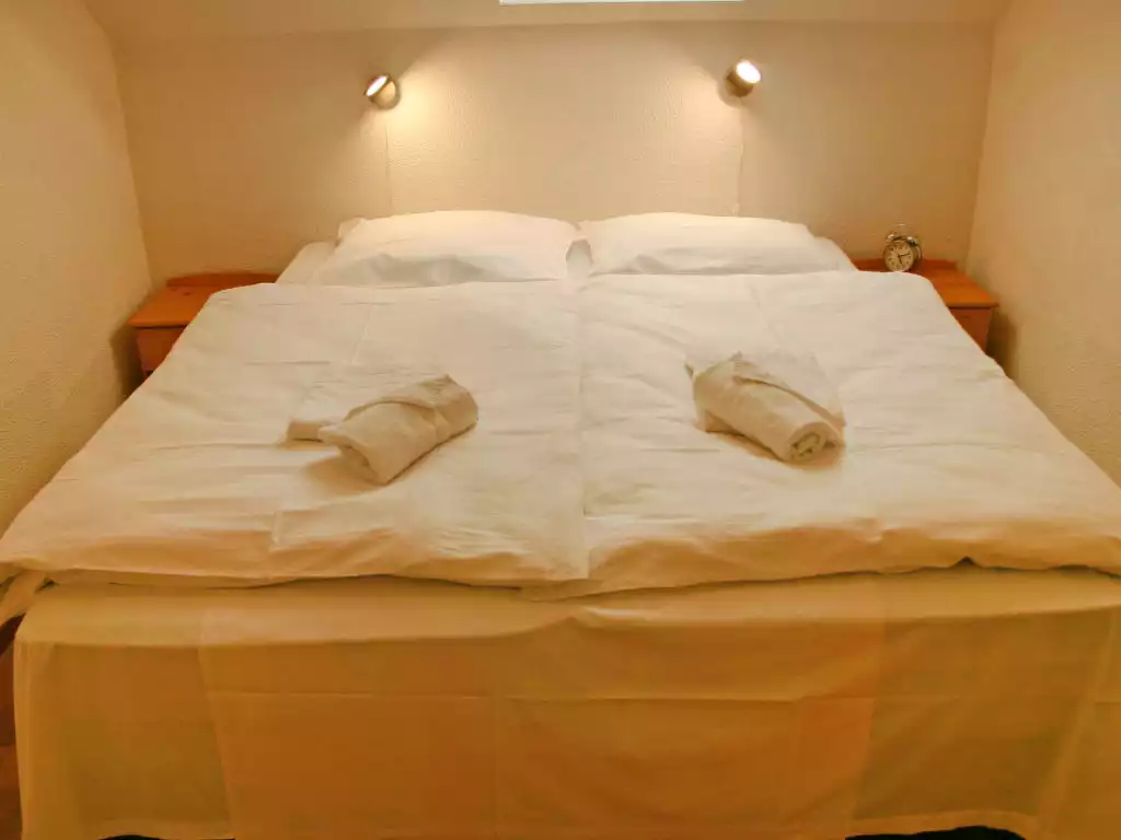 Holiday village "Frankenau", surrounded by trees and meadows. Outside the resort, 2 km from the centre of Frankenau, in the district Nationalpark Kellerwald, on a slope, 28 km from the lake. For shared use: natural state property, pond. In the complex: restaurant with TV, kiosk, sun terrace. Bread roll service. Grocery 8 km, restaurant 2 km, bakery 2 km, bicycle rental 15 km, bus stop 400 m, railway station "Frankenberg" 15 km, outdoor swimming pool 6 km, indoor swimming pool 15 km, thermal baths "Bad Wildungen-Reinhardshausen" 20 km, bathing lake 12 km. Golf course (18 hole) 25 km, tennis, indoor tennis centre 400 m, walking paths from the house 100 m, cycle lane 500 m, gondola lift 27 km, fishing possibilities 700 m. Nearby attractions: KellerwaldUhr 500 m, Schloss Waldeck 27 km. Well-known ski regions can easily be reached: Winterberg 45 km, Willingen 50 km. Well-known lakes can easily be reached: Edersee - Herzhausen 13 km. Hiking paths: Nationalpark Kellerwald 500 m. Please note: suitable for families. Neighbourhood highly sensitive to noise. Quietness and good behaviour expected. Some of the holiday homes can be reached via steps. At the park entrance there is a bistro/café with a sun terrace, Sunday breakfast buffet, children's cinema, table football (limited opening times outside of the season). There is also the option of using a washing machine and dryer for a fee."Am Sternberg 228", 3-room apartment 75 m2, on the upper floor. Partly with sloping ceilings, cosy furnishings: living/dining room 40 m2 with cable TV (flat screen). Exit to the balcony. 1 room 10 m2 with 1 double bed (180 cm, length 200 cm). 1 room 10 m2 with 3 beds (90 cm, length 190 cm). Kitchenette (oven, dishwasher, 4 ceramic glass hob hotplates, electric coffee machine). Bath/shower/WC. Electric heating. Large balcony 10 m2, south facing position. Balcony furniture, deck chairs (4). Facilities: Internet (WiFi, free). Parking at 10 m. Please note: non-smokers only. Maximum 2 pets/ dogs allowed. Private entrance, smoke alarm, fire extinguisher. When renting DE3558.200.18, the entire holiday home is on your disposal at the same time. Bookings accepted for holiday purposes only.