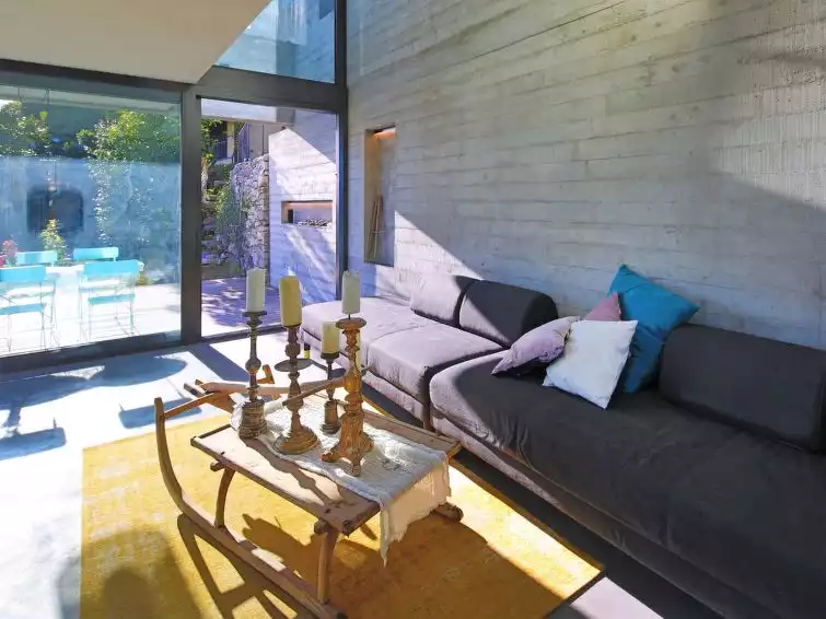 Modern, comfortable villa "Amina". In the hamlet Ponte 2 km from the centre of Cannero Riviera, in an elevated position on a slope, 1 km from the lake. Private: garden with lawn and trees. In the house: roof terrace. Public parking 50 m. Supermarket 2 km, restaurant 1.5 km, bus stop "Cannero" 550 m, railway station "verbania pallanza" 21.3 km. Nearby attractions: Verbania Intra 12 km, Wonderwood 11 km. Hiking paths: Alpe Ronno 4.5 km. Please note: car recommended.3-room villa 95 m2 on 2 levels. Bright, modern and tasteful furnishings: living room with panoramic window with TV. Exit to the patio. Kitchen (oven, dishwasher, 4 induction hot plates, electric coffee machine) with dining table, open-hearth fireplace (only for decoration). Shower/WC. Upper floor: 1 double bedroom, without wardrobe with bath/bidet/WC. 1 small room with 1 x 2 bunk beds (length 190 cm). Exit to the balcony. Floor heating. Heating available only from 15.10. to 15.04. Balcony, terrace, patio. Terrace furniture. Beautiful view of the lake and the mountains. Facilities: washing machine, hair dryer. Internet (WiFi, free). IT103016C2HFFJLOUE