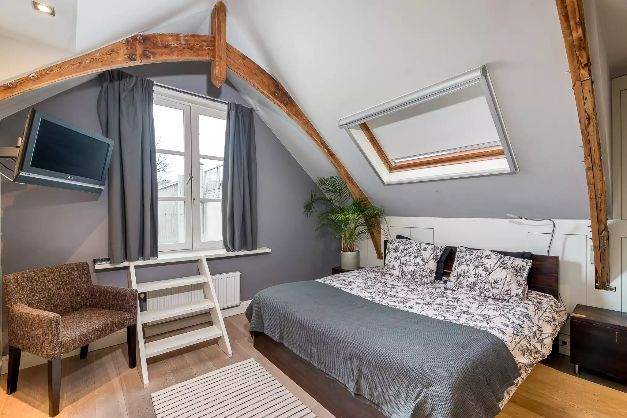 Access: Located on the second floor with a private street entrance. Please note: there are approximately 24 steps to climb—a quintessential Amsterdam experience, and well worth the effort.