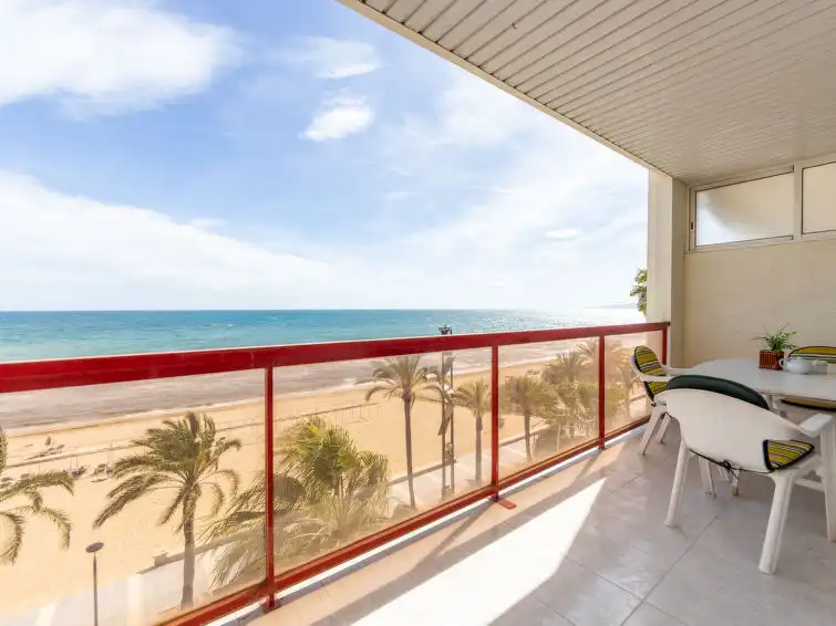 Salou: Cosy apartment block "Ancora", 5 storeys. In the district Salou, 10 m from the sea, 10 m from the beach, road to cross. For shared use: outdoor shower. In the house: lift. Parking. Bus stop "Bus La Plana parada Club Nautic" 200 m, railway station "Estación Camp Tarragona" 25 km. Nearby attractions: PortAventura, Ferrari Land. Please note: suitable for families. The owner does not accept any youth groups."Ancora", 3-room apartment 78 m2 on 4th floor. Object suitable for 4 adults + 2 children. Bright, beautiful furnishings: living/dining room with 1 sofabed (135 cm, length 190 cm), digital TV. Exit to the balcony, to the terrace. 1 room with 2 beds (90 cm, length 180 cm). 1 room with 2 beds (80 cm, length 180 cm). Kitchen (oven, 3 ceramic glass hob hotplates, toaster, kettle, microwave, electric coffee machine, Capsules for coffee machine (Nespresso)). Shower/WC. No heating option. Large terrace. Terrace furniture. Panoramic view of the ocean. Facilities: washing machine, iron, hair dryer. Internet (WiFi, free). Parking space n 32 (piso superior). The parking lot does not accept cars with low floors. HUTT-073103 // Reg. Nr.: ESFCTU00004302400039901300000000000000000HUTT-0731036 DEFINITIVO