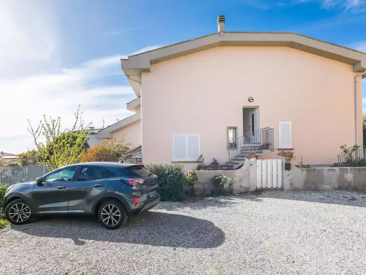 Modern 3-family house, 3 storeys. 4 km from the centre of Castiglioncello, 1.5 km from the centre of Rosignano Solvay, in the residential district, 2.5 km from the sea, in a cul-de-sac. For shared use: property (fenced), natural garden. Barbecue, parking at the house. Shop 500 m, supermarket 2 km, restaurant, bar 500 m, bicycle rental, bus stop 120 m, railway station "Rosignano Solvay" 2.5 km, sandy beach 2.5 km pebble beach 2.5 km. Marina 2.5 km. Nearby attractions: Livorno 25 km, Pisa 45 km, Lucca 70 km, Firenze 115 km. Please note: the owner lives in the same residence."Angela", 3-room apartment on 1st floor. Practical and modern furnishings: upper floor: (exterior staircase) living/dining room with dining table and satellite TV. Open kitchen (oven, dishwasher, Gas stove, 4 gas rings, toaster, kettle, electric coffee machine). Shower/bidet/WC. Gas heating. 2nd upper floor: 1 small double bedroom with sloping ceilings with air conditioning. 1 small room with sloping ceilings with rooflight with 1 bed. Sep. WC. Patio. Terrace furniture. Facilities: children's high chair, baby cot for up to 2 year olds, baby changing unit. Internet (WiFi, free). Parking. Maximum 1 pet/ dog allowed. IT049017C2RM9YWE55