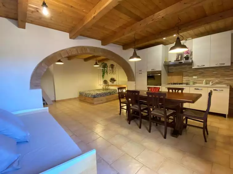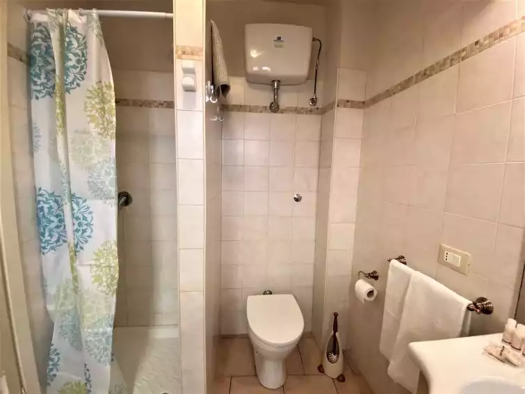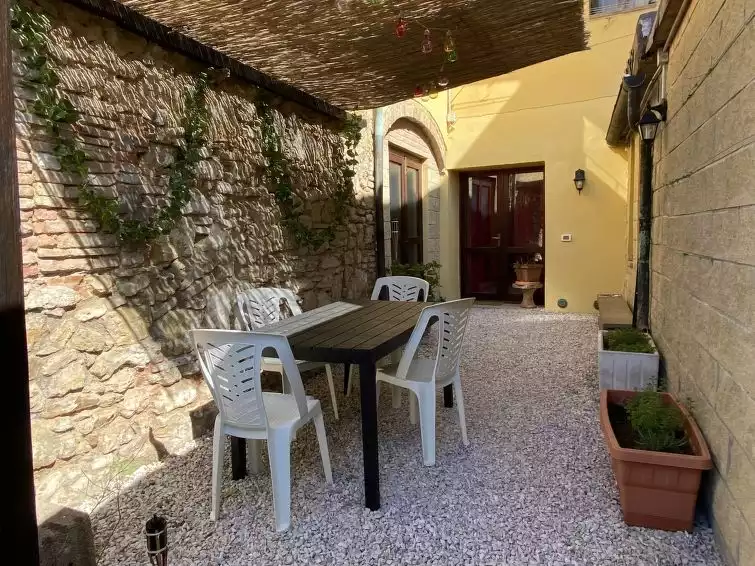 Apartment block "Angolino di Borgo", 3 storeys. In the centre of Montescudaio, in the heart of the city, 12 km from the sea. Private: small garden with flowers, meadow, public parking 180 m on the road. Shop 200 m, supermarket 8 km, restaurant, bakery, café 100 m, bus stop "Montescudaio V. Roma" 110 m, railway station "Cecina" 11 km, sandy beach "Marina di Cecina" 12 km, thermal baths "Calidario" 40 km. Nearby attractions: Bolgheri 15 km, Pisa 60 km, Lucca 80 km, Firenze 110 km. Please note: Loading and unloading of baggage is possible at the holiday house. The owner lives in the same residence. The apartment is located in a zone with limited traffic.1-room apartment 30 m2, on the ground floor. Spacious, partly renovated in 2022, beautiful and modern furnishings: living/sleeping room with 1 bed, 1 double bed and TV. Exit to the patio. Open kitchen (oven, Gas stove, 5 gas rings, toaster) with dining table. Exit to the patio. Shower/bidet/WC. No heating option. Patio 10 m2, porch. Facilities: baby cot for up to 2 year olds, hair dryer. Internet (WiFi, free). Please note: maximum 1 pet/ dog allowed. Private entrance. IT050020C26TAGPWW8