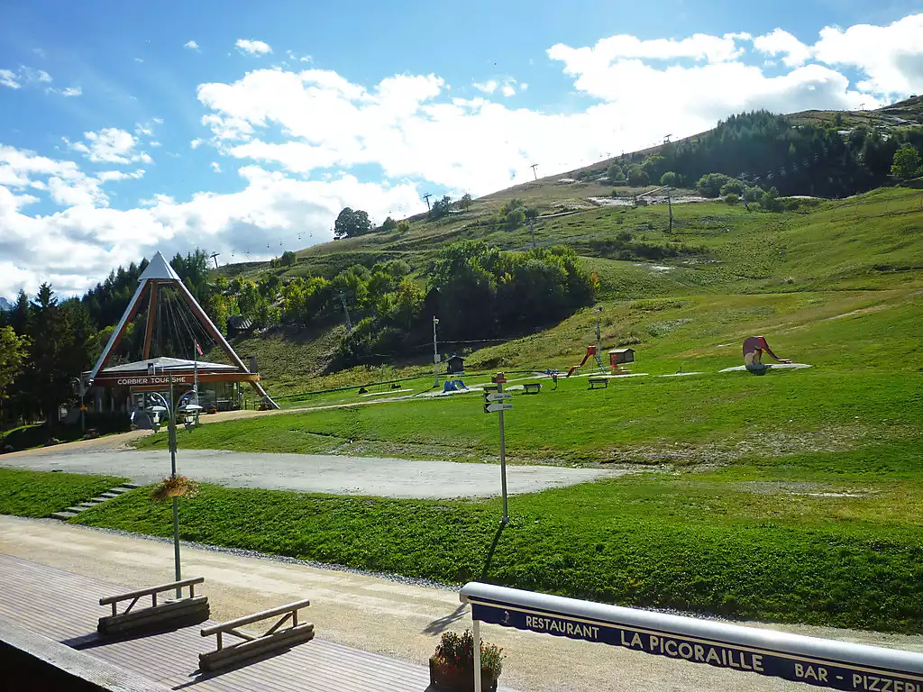 Residence "Apollo", 4 storeys. In the centre of Corbier, in a sunny position, 50 m from the skiing area. For shared use: swimming pool heated (25 x 12 m, depth 90 - 200 cm, seasonal availability: 13.Dec. - 10.Apr. and 27.Jun. - 28.Aug. pool opening hours: 10:00-19:30). In the complex: lift, storage room for skis. Public parking 20 m. Shop 20 m, grocery 30 m, restaurant, bar 20 m, bus stop "Centre-Bagagerie" 70 m, railway station "St Jean de Maurienne" 17 km, outdoor swimming pool 100 m. Ski lift, chair lift 50 m, ski school 40 m, ski-kindergarten 150 m, sled run 40 m. Please note: Additional accommodations can be booked. The swimming pool facilities are 100 m from the residence at the municipal pool. Entrance for under 3’s is not allowed. Children between 3 and 5 years old are allowed subject to weather conditions (in winter). Entrance tickets to the swimming pool are included in your rental price and will be given to you when you check in.2-room apartment 32 m2 on 1st floor. Fully renovated in 2018, comfortable and beautiful furnishings: living/dining room with sliding door with TV (flat screen), DVD and DVD collection available. Exit to the balcony, south facing position. Alcove with sliding door, window onto the living room with 1 french bed (140 cm, length 190 cm). Entrance hall with 2 wall-trunk beds (80 cm, length 190 cm). Open kitchen (oven, dishwasher, 3 induction hot plates, toaster, kettle, microwave, electric coffee machine, Capsules for coffee machine (Nespresso) extra, raclette grill, fondue Set (cheese)). Bathroom, sep. WC. Electric heating. Parquet floors. Balcony 4 m2, south facing position. Balcony furniture, deck chairs (1). View of the ski run. Facilities: washing machine, iron, baby cot, hair dryer. Internet (WiFi, free). Please note: non-smokers only. Maximum 1 pet/ dog allowed. Smoke alarm. INCLUDED CANAL+/CANAL SPORT/CANAL SERIES/CANAL CINEMA/NETFLIX/OCS/DISNEY/BEIN/EUROSPORT. Instead of an enclosed bedroom, some sleeping areas are located in an open-plan area (gallery, alcove, etc.). Offer by a private individual according to Art. 155, IV of CGI.