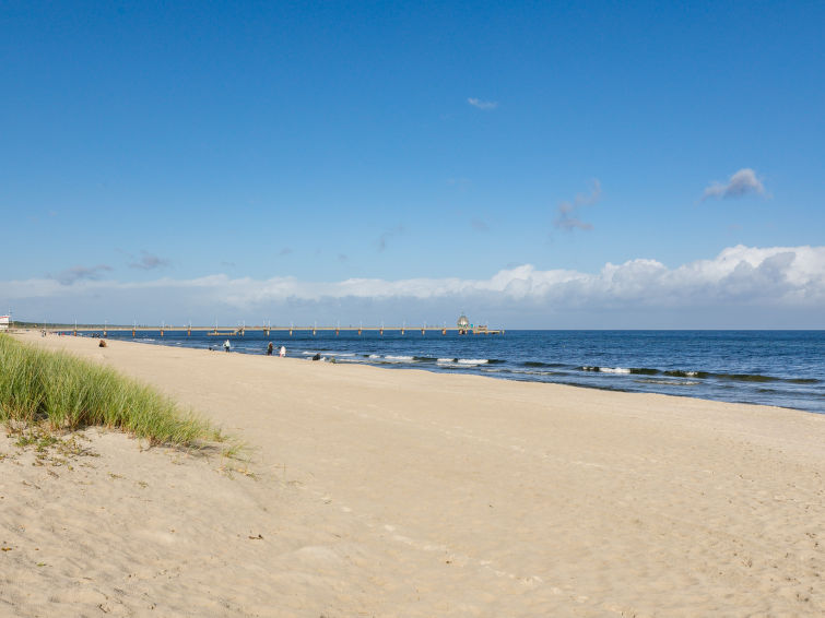Apartment block "Zinnowitzer Hof", 3 storeys. In the resort Zinnowitz, 50 m from the sea, 50 m from the beach. In the house: lift, central heating system. Supermarket 750 m, restaurant 20 m, bakery, café, bus stop 550 m, railway station 1.5 km, sandy beach 50 m, thermal baths "Bernsteintherme" 1.1 km. Marina 2.5 km, golf course (18 hole) 25 km, surf school 650 m, tennis 650 m, minigolf 1.1 km."App.17 Zinnowitzer Hof", 1-room apartment 30 m2 on 3rd floor. Tasteful and cosy furnishings: living/sleeping room with 1 double bed, dining table and cable TV (flat screen). Exit to the balcony. Kitchenette (2 ceramic glass hob hotplates, toaster, kettle, microwave, electric coffee machine). Shower/WC. Balcony. Balcony furniture. Facilities: children's high chair, baby cot, hair dryer. Parking (extra, 1 car). Please note: non-smokers only. Maximum 1 pet/ dog allowed. Smoke alarm. Side sea view from the balcony.