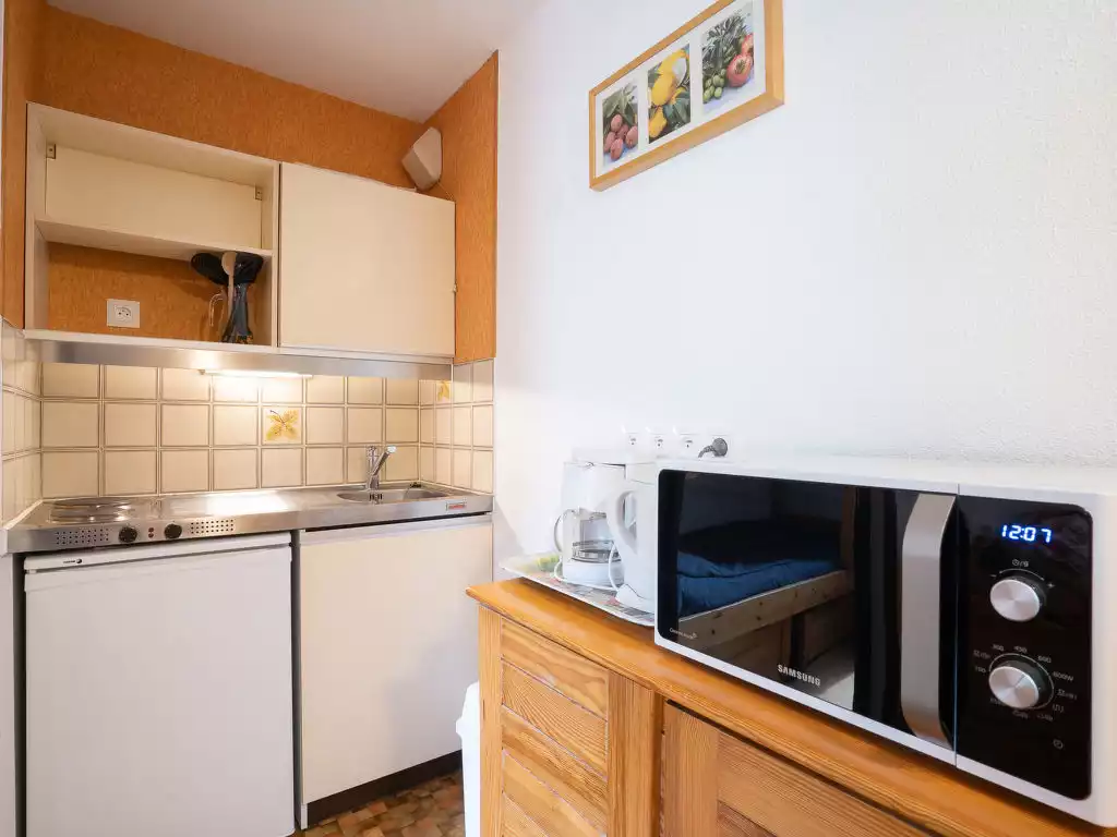 Residence "L'Astragale". In the district of Les Fontanettes 700 m from the centre of La Croisette, in a quiet position, 300 m from the skiing area. In the house: lift, storage room for skis. Public parking on the road. Bus stop "Arret fontanettes bas" 300 m. Skisport facilities 300 m, slopes 100 m, ski school, ski-kindergarten 800 m. Well-known ski regions can easily be reached: 3 Vallées. Please note: the photograph shows a typical example. Additional accommodations can be booked."Astragale 412 A", 1-room apartment 24 m2 on 1st floor. Beautiful furnishings: living/dining room with 1 pull-out bed (2 pers. 2 x 80 cm, length 190 cm), TV (flat screen). Sleeping alcove with 1 x 2 bunk beds (80 cm, length 190 cm). Kitchenette (2 hot plates, kettle, microwave, electric coffee machine). Bath/WC. Electric heating. Balcony, west facing position. Beautiful view of the mountains and the ski run. Facilities: Internet (WiFi, extra). Please note: smoke alarm. Instead of an enclosed bedroom, some sleeping areas are located in an open-plan area (gallery, alcove, etc.). 73257004493WF