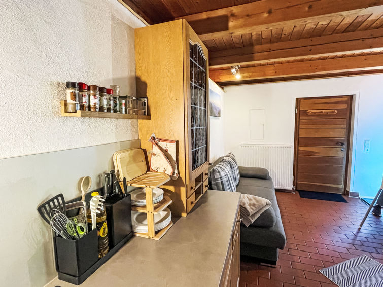Historical working farm "Jockelsbauernhof und Backhäusle", 440 m a.s.l.. In the district of Ehlenbogen 3.5 km from the centre of Alpirsbach, 10 km from the centre of Schiltach, 19 km from the centre of Freudenstadt, in a secluded, sunny position. For shared use: property with meadow, orchard. Children's playground (swing, sandbox), parking on the premises. Shop 3.5 km, bus stop "Unterehlenbogen" 400 m, railway station "Alpirsbach" 3.5 km, outdoor swimming pool 4 km, indoor swimming pool 4 km. Golf course (9 hole) 8.5 km. Please note: the owner lives on the same property. The BACKHÄUSLE (DE7297.608.1) on the same property, as the name suggests, the former bakery, has been completely restored. The old building structure, quarry sandstone on the ground floor and half-timbered extension in the attic, as well as the old wood-fired oven have been preserved and give the house its unique charm. Hikes are possible from the house, the Kinzigtal cycle path runs past the house. The children's adventure trail 'Felix and his hat' ends at the farm. 3 inns (approx. 350-1500 m) are also within walking distance."Backhäusle", 2-room house 45 m2 on 2 levels. Simple and rustic furnishings: kitchen-/living room (oven, dishwasher, 4 ceramic glass hob hotplates, toaster, kettle, electric coffee machine) with dining table and satellite TV. Exit to the terrace. Shower/WC. Oil heating. Top floor: (steep stair), 1 open room with sloping ceilings with 2 beds and 1 double bed. Electric heating. Parquet floors. Terrace. Terrace furniture, barbecue, deck chairs. Facilities: baby cot. Please note: non-smoking house. Maximum 1 pet/ dog allowed. Smoke alarm. Note: From the kitchen-living room steep wooden stairs/ladder through open floor hatch into the attic.
