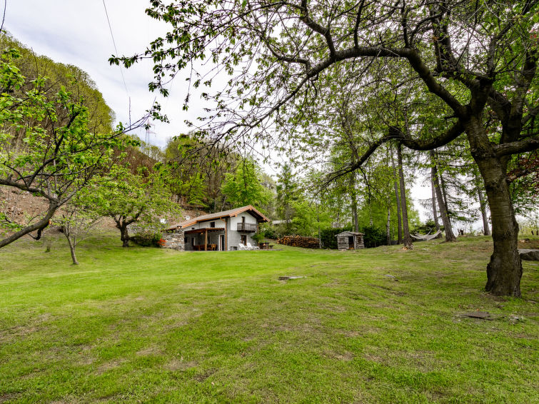 "rustico" cottage "Baita Nini", 800 m a.s.l., surrounded by trees. 7.5 km from the centre of Cannero Riviera, 1.5 km from the centre of Trarego, in a secluded, quiet, elevated position, 7.5 km from the lake, in the woods. Private: natural state property 2'000 m2 (fenced) with lawn and trees. Motor access to the house (1 km mountain road). Parking (for 2 cars). Supermarket 7 km, restaurant 3 km, bar 1.5 km, bus stop 7.5 km, grass beach "Cannero Riviera" 7.5 km. Nearby attractions: Verbania 22 km. Please note: car recommended.3-room house 70 m2 on 2 levels. Practical and rustic furnishings: living/dining room with open-hearth fireplace, dining table and satellite TV. Exit to the patio. Kitchenette (4 hot plates, oven, dishwasher, freezer, electric coffee machine). Shower/WC. Gas heating. Top floor: 1 double bedroom. Exit to the balcony. 1 room with 2 beds and 1 x 2 bunk beds. Open alcove with sloping ceilings, without wardrobe with 1 bed. Balcony, patio 20 m2, roofed. Terrace furniture, barbecue, deck chairs (2). Panoramic view of the lake and the mountains. Facilities: washing machine, children's high chair, baby cot for up to 2 year olds. Internet (WiFi, free). Please note: non-smokers only. Maximum 2 pets/ dogs allowed. Instead of an enclosed bedroom, some sleeping areas are located in an open-plan area (gallery, alcove, etc.). IT103066C2TXVCSI5P