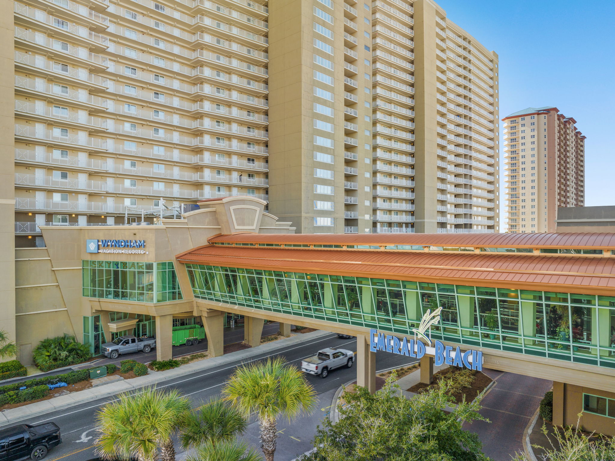 Enjoy the resort amenities of Emerald Beach like our two large community pools, hot tub, poolside tiki bar, and fitness facility. There's a Starbucks in the lobby or enjoy a drink from the on site Sky Bar lounge. Convenient to many local attractions and with Pier Park only 1.2 miles away, you'll have access to plenty of shopping and entertainment!