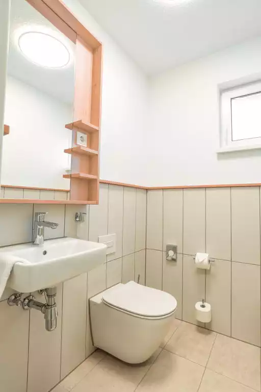 Child friendly holiday village "BEECH Resort Fleesensee", surrounded by meadows and fields. In the district of Göhren-Lebbin 8 km from the centre of Malchow, 21 km from the centre of Waren, 2.5 km from the lake. For shared use: indoor pool. Children's pool, slide, basketball, beach volleyball, children's playground, petting farm. In the complex: reception, restaurant, bar, sauna (extra). Fitness room (extra). Massage (extra). Spa area, table tennis, billiard table, playroom, trampoline, shopping facilities, bicycle rental. Breakfast and half board on request (extra). Parking (limited number of spaces) on the premises. E-charging station. Supermarket 8 km, bus stop "Göhren-Lebbin" 350 m, railway station "Waren-Müritz" 24 km, grass beach 3 km. Marina 3.5 km, golf course (18 hole) 2 km, surf school 3 km, sailing school 3 km, tennis 2 km, minigolf 1 km, riding stable 6 km. Nearby attractions: Natur Erlebnis Zentrum Müritzeum 21 km. Please note: childminding in the season (included). Pet (dog only) on request."Maisonette", 3-room apartment 62 m2 on 2 levels. Object suitable for 4 adults + 2 children. Tasteful furnishings: upper floor: living/dining room with 1 double sofabed (160 cm, length 190 cm), satellite TV (flat screen). Exit to the balcony. 1 double bedroom. Kitchenette (2 hot plates, oven, dishwasher, toaster, kettle, microwave, electric coffee machine). Shower, sep. WC. Heating. 2nd upper floor: 1 double bedroom. Balcony. Balcony furniture. Facilities: safe, children's high chair, baby cot, hair dryer. Internet (WiFi, free). Please note: non-smokers only. Smoke alarm, fire extinguisher. Note: Maximum occupancy 4 adults and 2 children up to 14 years. Children over 14 years only on request and against payment on spot (per person € 15/day).