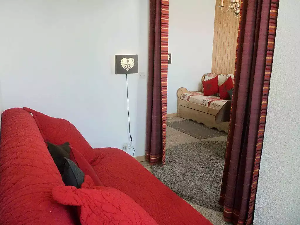 ATTENTION: The keys of the accommodation of Toussuire are handed over at the Interhome du Corbier office 4 km away. For arrivals by bus, please contact us 48h in advance to organize your key delivery. Extra charge service possible 30 € residence "Bellard", 7 storeys. 50 m from the centre of La Toussuire, in a quiet position, 50 m from the skiing area, road to cross. In the complex: lift, storage room for skis. In Winter: please take snow chains. Parking at the house. Shop, grocery 80 m, restaurant 100 m, bus stop 150 m, railway station "St Jean de Maurienne" 15 km. Ski lift 80 m, chair lift 120 m, skisport facilities 100 m, slopes 80 m, ski school 80 m, ice rink 70 m. Please note: the keys‘ handover takes place by the agency INTERHOME DU CORBIER in LA STATION VOISINE, 4 km. Additional accommodations can be booked.1-room apartment 23 m2 on 7th floor, north facing position. Beautiful and cosy furnishings: living/dining room with panoramic window with 1 pull-out bed (2 pers. 2 x 80 cm, length 190 cm), TV (flat screen), DVD. Exit to the balcony. Alcove with curtain with 1 double sofabed (140 cm, length 190 cm). Small kitchen (2 hot plates, mini-oven, toaster, kettle, microwave, electric coffee machine). Bathroom, sep. WC. Heating. Parquet floors. Balcony 4 m2, north facing position. Marvellous panoramic view of the mountains, the valley and the resort. Facilities: hair dryer. Internet (WiFi, extra). Please note: non-smokers only. Smoke alarm. FOR THOSE GUESTS ARRIVING BY BUS, please contact us 48 hrs in advance to arrange key collection. Instead of an enclosed bedroom, some sleeping areas are located in an open-plan area (gallery, alcove, etc.). Offer by a private individual according to Art. 155, IV of CGI.