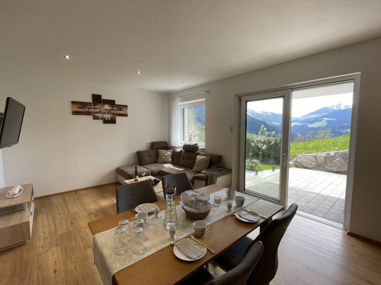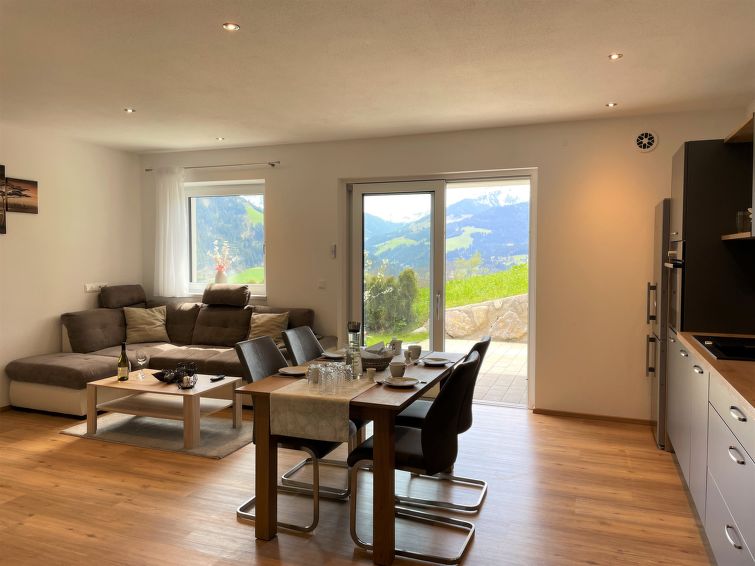 Oberau: Modern, beautiful 2-family house "Bergblick", 3 storeys, built in 2018. Above Oberau 1 km from the centre of Oberau, 5 km from the centre of Niederau, 3 km from the centre of Auffach, in a quiet, sunny position on a slope. Private: beautiful garden 200 m2 with lawn and wildlife garden. In the house: central heating system. 800 m long motor access to the grounds (mountain road). In Winter: please take snow chains. Stepped path (15 steps) to the house. Parking at the house. Shop 1.6 km, supermarket 1.6 km, restaurant 20 m, bakery 2 km, bicycle rental 5 km, bus stop 800 m, outdoor swimming pool 3.3 km. Walking paths from the house 20 m, ski lift 2 km, gondola lift 3.3 km, ski rental 1.2 km, ski bus stop 800 m, ski school 2 km, children's ski school 2 km, cross country ski track 1.5 km, ice rink 2 km. Nearby attractions: Familienfreizeitpark "Drachental" 2 km, Alpine Coaster im Drachental 2 km, Holzmuseum Auffach 3.1 km, Bergbauernmuseum 2.8 km. Well-known ski regions can easily be reached: Skijuwel Alpbachtal - Wildschönau 3.3 km, Skiwelt Wilder Kaiser - Brixental 16 km. Well-known lakes can easily be reached: Achensee, Schwarzsee bei Kitzbühel. Hiking paths: Schatzberg, Markbachjoch, Gratlspitz, Wilder Kaiser / Brixental, Kitzbüheler Alpen. Please note: ski bus (free of charge). Free ski bus service to the ski region SkiJuwel Alpbachtal - Wildschönau. Please note: the owner lives in the same residence."Bergblick", 3-room apartment 79 m2, lower ground floor. Spacious and bright, beautiful and modern furnishings: living/dining room with dining table, satellite TV and international TV channels (flat screen). Exit to the terrace. 1 double bedroom with satellite TV (flat screen). 1 room with 2 beds. Open kitchen (oven, dishwasher, 4 ceramic glass hob hotplates, toaster, kettle, microwave, freezer, electric coffee machine). Exit to the terrace. Shower/WC. Heating. Wooden floors. Large terrace partly roofed. Terrace furniture, barbecue, deck chairs (2), box-room. Marvellous panoramic view of the mountains, the valley and the resort. Facilities: children's high chair, baby cot, hair dryer. Internet (WiFi, free). Please note: non-smokers only. Private entrance, fire extinguisher.
