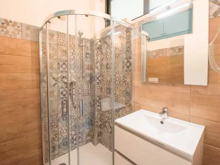 Beautiful residence "Magnolia", 3 storeys. 2 houses in the residence. 27 apartments in the residence. In the centre of Marina di Bibbona, in a central position, 400 m from the sea. For shared use: property 5'000 m2 (fenced), natural garden, swimming pool (25 x 12 m, depth 140 - 280 cm, seasonal availability: 18.May. - 28.Sep.). Children's pool, outdoor shower, table tennis, terrace, children's playground, pool maintenance by the owner/gardener. In the complex: WiFi, lift, roof terrace, washing machine (for shared use, extra). Linen change (suppl. charge extra). Towel change (suppl. charge extra). Parking on the premises. Shop, restaurant, café, bicycle rental 100 m, bus stop 250 m, railway station "Bolgheri" 2 km, sandy beach 400 m. Minigolf 100 m. Nearby attractions: Bogheri 9 km, Pisa 60 km, Lucca 90 km, Firenze 120 km."Bilo Standard Garden", 2-room apartment 38 m2, on the ground floor. Beautiful and modern furnishings: living/sleeping room with 1 double sofabed, dining table, digital TV, flat screen, electric heating and air conditioning. Exit to the garden, to the veranda. 1 double bedroom. Open kitchen (4 induction hot plates, microwave, electric coffee machine, Capsules for coffee machine (Nescafe Dolce Gusto) extra). Shower/bidet/WC. Balcony 7 m2, small patio. Balcony furniture. View of the swimming pool. Facilities: children's high chair, baby cot for up to 2 year olds (extra), hair dryer. Internet (WiFi, free). Please note: fire extinguisher. IT049001B4AEH7IC3H