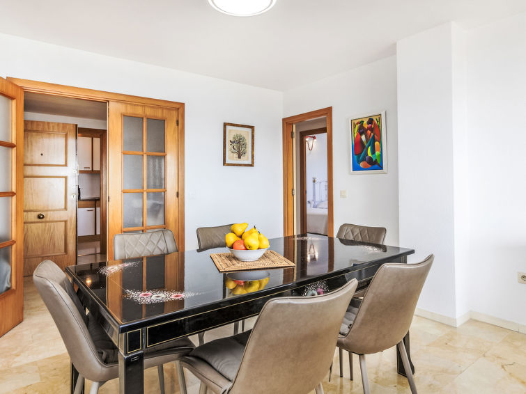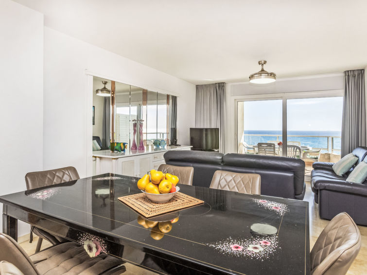 Playa S'Abanell 2 km from Blanes Centro: Modern, comfortable apartment block "Blanes Beach". In the centre of Blanes, in a busy, sunny position, 30 m from the sea, 30 m from the beach, road to cross. For shared use: swimming pool kidney-shaped (10 x 5 m, depth 70 - 240 cm, seasonal availability: 01.Jun. - 30.Oct. pool opening hours: 10:00-22:00). Children's pool, outdoor shower, pool maintenance by the owner/gardener. In the house: restaurant, bar, lift. Roofed, parking space n 55. Parking space or garage only for small to medium-sized cars. Dimension: height 230 cm width 600 cm. Shop 50 m, grocery 100 m, restaurant 10 m, bus stop 50 m, railway station "Blanes" 1 km, sandy beach "Playa S'Abanell" 30 m. Golf course 21 km, children's playground 10 m. Nearby attractions: Marineland 10 km, Waterworld 12 km, Jardín Botánico Marimurtra 5 km, Jardín Botánico Pinya de Rosa 7 km. Please note: suitable for families. Groups of teenagers on request only. Additional accommodations can be booked. Property ref. ES9470.97 is situated on the same property. Neighbourhood highly sensitive to noise. Quietness and good behaviour expected."Blanes Beach", 4-room apartment on 3rd floor. Spacious and bright, very practical and tasteful furnishings: living/dining room with digital TV. Exit to the loggia. 1 double bedroom with 1 french bed (150 cm, length 190 cm), bath/bidet/WC. Exit to the loggia. 1 room with 2 beds (90 cm, length 190 cm). 1 double bedroom with 1 french bed (150 cm, length 190 cm). Large kitchen (dishwasher, 4 ceramic glass hob hotplates, toaster, kettle, microwave, freezer, electric coffee machine, Capsules for coffee machine (Dolce Gusto)). Shower/WC. No heating option. Large balcony. Balcony furniture. Panoramic view of the sea. Facilities: washing machine, children's high chair, baby cot for up to 2 year olds, hair dryer. Internet (WiFi, free). Garage space n 55 altura 1.90m. Suitable for families. HUTG020715 // Reg. Nr.: ESFCTU000017028000241834000000000000000000HUTG0207155