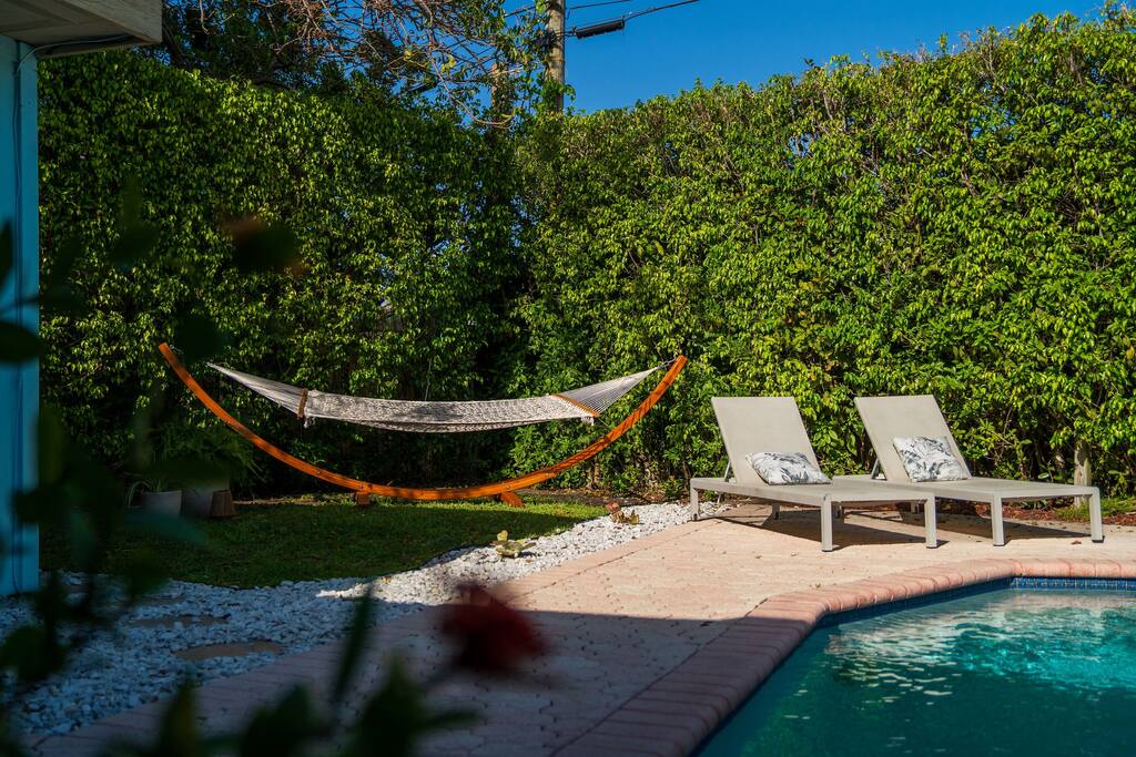 • You will have your own private backyard with a relaxing private pool, a grill to cook your perfect lunch, a hammock, hanging chair, sun chaise lounges, and lounge chairs to choose where you want to relax. When you've had enough sun, the covered pergola has a dining table and a lounging area perfect to catch up on your favorite book!