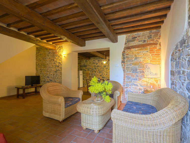 Beautiful country house "Agriturismo Campolungo", 2 storeys, built in 1700, renovated in 2005, surrounded by fields and vineyards. 6 apartments in the property. 1 km from the centre of San Donato in Poggio, 41 km from the centre of Firenze, 50 km from the centre of Siena, in a secluded, sunny position, 90 km from the sea, in the countryside. For shared use: property 6 m2 (fenced), well-kept garden flowers and trees, swimming pool fenced (15 x 8 m, depth 100 - 300 cm, seasonal availability: 01.Apr. - 31.Oct.). Outdoor shower, terrace, garden furniture, barbecue, pool maintenance by the owner/gardener. In the house: WiFi, washing machine (extra) (for shared use). 500 m long motor access to the grounds (via unmade road). Roofed, parking on the premises. Shop 1 km, grocery 1 km, supermarket 1 km, restaurant 1 km, bar 1 km, bakery 1 km, bus stop "San Donato" 1 km, railway station "Poggibonsi" 13 km, sandy beach "Cecina" 90 km. Golf course (18 hole) 35 km, tennis 4 km, walking paths from the house 100 m, fishing possibilities 4 km. Nearby attractions: San Gimignano 28 km, Greve in Chianti 20 km, Certaldo 29 km, Volterra 50 km. Please note: suitable for families, baby equipment (included). Local sale of farm products. The owner lives on the same property. All houses/apartments are individually designed/furnished."Boccaccio", 3-room apartment 90 m2, on the ground floor. Object suitable for 4 adults. Spacious, fully renovated in 2005, rustic and cosy furnishings: living room with satellite TV (flat screen). 1 double bedroom. 1 room with 2 beds (80 cm). Kitchen-/living room (4 hot plates, oven, dishwasher, microwave, electric coffee machine) with dining table. Shower/bidet/WC. Heating, air-conditioning. Natural stone floors. Patio. Terrace furniture, barbecue. Very beautiful panoramic view of the countryside and Chianti. Facilities: safe, children's high chair, baby cot for up to 2 year olds, hair dryer. Internet (WiFi, free). Parking (roofed, 2 cars). Please note: suitable for families. Non-smokers only. Maximum 1 pet/ dog allowed. Private entrance. No mandatory extra charges to be paid on-site except for local tax. Bedlinen, towels, final cleaning and all energy costs are included. IT048054B5EBVWGG6K