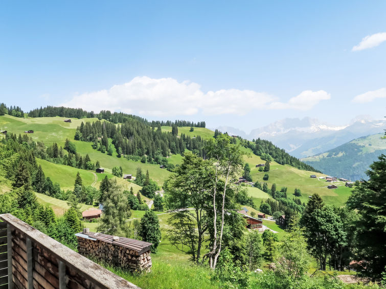 Furna 20 km from Landquart: Child friendly, cosy chalet "Börtji", 1'500 m a.s.l., 2 storeys, detached, built in 2011, surrounded by trees and meadows. Above Furna, in a quiet, sunny, elevated position, 5 km from the skiing area, in a cul-de-sac, in the countryside. Private: natural state property. In the house: storage room for skis, washing machine. Narrow motor access to the house (mountain road). In Winter: please take snow chains, 4x4 car recommended in winter. Stepped path to the house. Communal covered parking at 100 m. Grocery 1.7 km, restaurant 3.5 km, bus stop "Furna, Kirche" 1.4 km, railway station "Pragg-Jenaz" 6.5 km, outdoor swimming pool 12 km, indoor swimming pool 12 km, thermal baths "Bad Ragaz" 25 km. Golf course (18 hole) 25 km, tennis 10 km, mountain railway 5 km, ski lift 2.5 km, slopes 2.5 km, ski school 2.5 km, sled run 200 m. Nearby attractions: Kidspark - Madrisa, Chur. Well-known ski regions can easily be reached: Grüsch Danusa, Klosters-Davos. Please note: baby equipment (included).3-room chalet 92 m2 on 2 levels. Bright, partly with sloping ceilings, comfortable and wooden furniture furnishings: open living/dining room with Scandinavian wood stove, dining table, cable TV, flat screen and radio. Exit to the terrace. Open kitchen (oven, dishwasher, 4 ceramic glass hob hotplates, freezer, electric coffee machine, fondue Set (cheese)). Bath/shower/WC. Electric heating, wood heating, boiler (300 litres). Upper floor: 1 double bedroom with 1 double bed (180 cm, length 200 cm). 1 room with 2 beds (90 cm, length 200 cm), 1 sleeping facility (80 cm, length 180 cm). Wooden floors. Terrace 12 m2. Terrace furniture, deck chairs (2). Very beautiful panoramic view of the mountains, the valley and the countryside. Facilities: children's high chair, baby cot, baby changing unit. Internet (WiFi, free). Garage at 100 m. Please note: suitable for families. Non-smokers only.