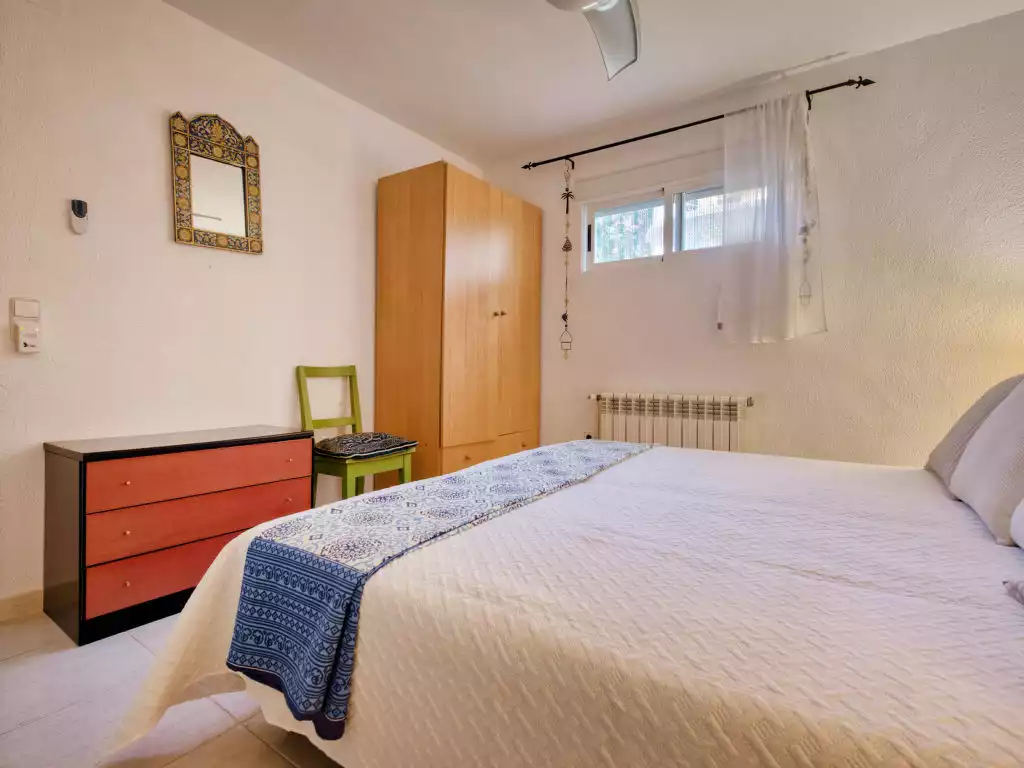 The accomodation is on the lower part of the house. House "Bosque". In the district of Covatelles, in a quiet, sunny position, 8 km from the sea. Private: garden 1'080 m2 (fenced) with swimming pool (4 x 8 m, seasonal availability: 01.Jan. - 31.Dec.) with internal staircase. Outdoor shower. In the house: central heating system. Supermarket 3 km, restaurant 1.5 km, bus stop 6 km, sandy beach "Arenal" 8 km. Golf course (9 hole) 3 km. Groups of teenagers on request only. Please note: 1st floor is closed and not occupied.6-room house 160 m2, on the lower ground floor. Simple and practical furnishings: living room with satellite TV (flat screen), DVD and air conditioning. Living room. Exit to the garden. 1 double bedroom with fan. 2 rooms, each room with 1 french bed (180 cm, length 200 cm), air conditioning and fan. 1 room with 2 beds (90 cm, length 190 cm), fan. Large kitchen (dishwasher, microwave, freezer, electric coffee machine) with dining table. 2 showers/WC. Large terrace. Terrace furniture, barbecue, deck chairs (8). Facilities: washing machine, children's high chair, baby cot for up to 2 year olds, hair dryer. Internet (WiFi, free). Parking (fenced 2 cars) at the house. Please note: TV only EN, ES. The accomodation is on the lower part of the house. AT459696A // Reg. Nr.: ESFCTU0000030710004408650000000000000000000AT459696A9
