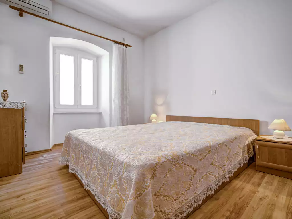 Terraced house "Branko". 2 apartments in the property. In the centre of Sveti Juraj, in a sunny position, 20 m from the sea, 100 m from the beach. Private: terrace (6 m2), garden furniture. In the house: internet access. Public parking on the road extra. Shop 30 m, restaurant 20 m, bus stop 400 m, pebble beach, concrete beach 100 m. Nearby attractions: national parki Sjeverni Velebit 30 km.3-room apartment 60 m2, on the upper ground floor. Living room with 1 double sofabed (140 cm, length 200 cm), satellite TV (flat screen). 1 room with 1 french bed (160 cm, length 200 cm), air conditioning. 1 room with 1 french bed (160 cm, length 190 cm), air conditioning. Dining room. Open kitchen (4 hot plates, oven, microwave, freezer, electric coffee machine). Shower/WC. No heating option. Facilities: Internet (WiFi, free).