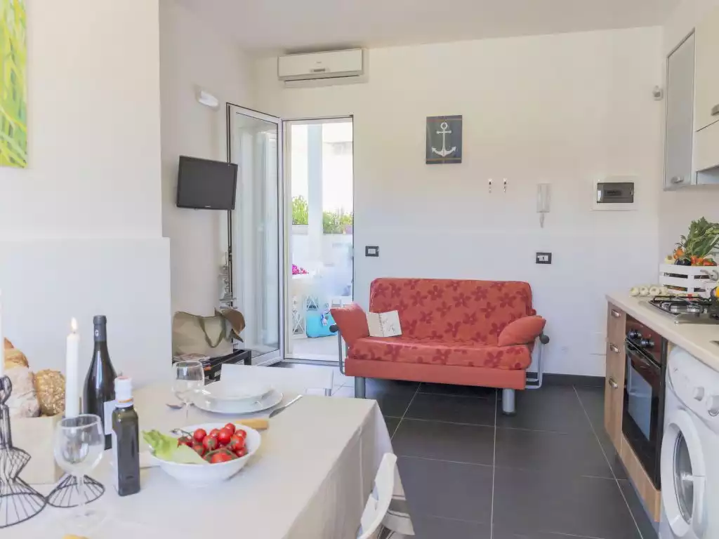 Apartment house, 3 storeys, renovated in 2016. 5 apartments in the property. In the hamlet Donnalucata 9 km from the centre of Scicli, in a sunny position, 500 m from the sea. Public parking on the road. Grocery 50 m, supermarket 300 m, restaurant 250 m, bus stop 800 m, sandy beach "Donnalucata" 500 m. Nearby attractions: Modica 20 km, Ragusa 30 km, Ispica 35 km, Noto 54 km, Siracusa 87 km. Please note: car recommended."Brezza", 3-room apartment 45 m2, on the ground floor. Practical and modern furnishings: living/dining room with 1 sofabed (120 cm), TV (flat screen), air conditioning and forced-air heating. Exit to the patio. 1 double bedroom with fan. 1 room with 2 beds. Kitchenette (4 hot plates, oven). Shower/bidet/WC. Heating, forced-air heating. Heating available only from 01.12. to 31.03, Heating not available in all rooms. Terrace 15 m2 partly roofed. Terrace furniture. Facilities: washing machine, iron, children's high chair, baby cot for up to 2 year olds (extra), hair dryer. Internet (WiFi, free). Please note: maximum 1 pet/ dog allowed. Smoke alarm, fire extinguisher. IT088011B4P9II83MS