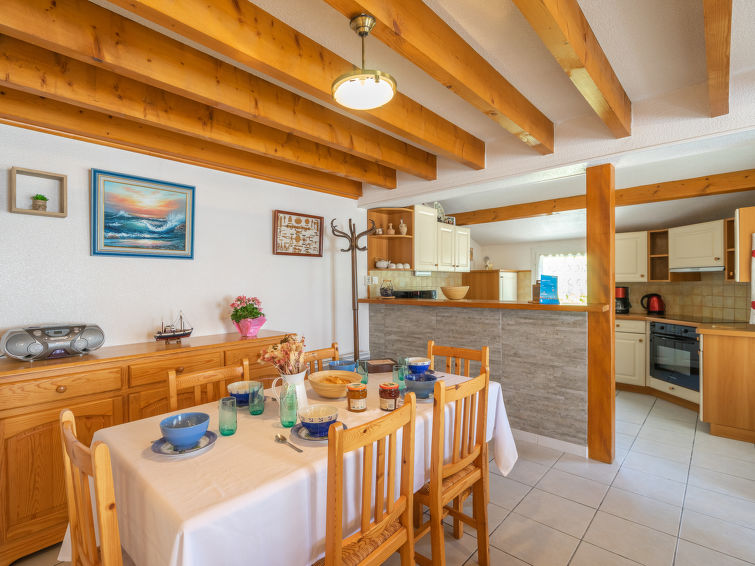 Vaux sur Mer 3 km from Royan: Single-family house "Brive 1". In the resort 1.6 km from the centre of Vaux sur Mer, in a quiet position, 300 m from the sea, 300 m from the beach. Private: well-kept garden 300 m2 (fenced). Terrace, garden furniture, barbecue, parking (for 2 cars) on the premises. Shop 1 km, supermarket 800 m, restaurant 1 km, bar 1 km, café 1 km, bus stop "St Sordelin" 200 m, railway station "Royan" 5 km, sandy beach "plage de St Sordelin" 300 m, park "Luna Park (Juillet-Août)" 18 km, indoor swimming pool 4 km, thermal baths "Thalassothérapie Thalazur Royan" 2.6 km, swimming bay 300 m. Sports harbour 3.3 km, golf course (18 hole) 6 km, surf school 1 km, sailing school 1.5 km, tennis 1.7 km, indoor tennis centre 1.7 km, minigolf 1.4 km, riding stable 6 km, cycle lane 200 m. Nearby attractions: Zoo de La Palmyre 12 km, Hippodrome - La Palmyre 14 km, Centre aquatique Iléo - Ile d'Oléron 47 km, Fort Boyard - Fouras 59 km, Aéroport La Rochelle - Ile de Ré 81 km, Aéroport Bordeaux - Merignac 111 km. The keys‘ handover takes place by the agency Interhome in Vaux sur Mer, 1 km.4-room house 70 m2 on 2 levels. Comfortable furnishings: living/dining room with TV (flat screen). Exit to the terrace. 1 room with 1 french bed (1 x 140 cm, length 190 cm). Open kitchen (oven, dishwasher, 4 ceramic glass hob hotplates, microwave, electric coffee machine). Bathroom, sep. WC. Electric heating. Upper floor: 2 rooms, each room with 1 french bed (1 x 140 cm, length 190 cm). Terrace furniture. Facilities: washing machine, iron. Internet (WiFi, free). Parking (2 cars). Please note: smoke alarm.
