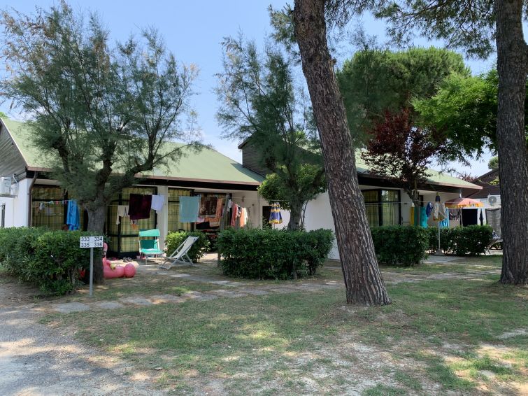 Large, child friendly resort "Mare Pineta". 210 apartments in the residence. 800 m from the centre of Casal Borsetti, on the outskirts, 200 m from the sea, 200 m from the beach, in the countryside. For shared use: property 12 ha (fenced) with lawn and trees, 2 swimming pools (seasonal availability: 15.May. - 15.Sep.). Children's pool, tennis (2 x hard court), boccia, volleyball, children's playground. In the complex: reception, restaurant, bar, WiFi, shopping facilities, washing machine, tumble dryer (for shared use, extra), bicycle rental. Full board on request (extra). Central parking spaces. Bus stop 1.2 km. Nearby attractions: Ravenna 15 km, Comacchio 20 km, Abbazia di Pomposa 35 km, Ferrara 71 km, Venezia 120 km. Hiking paths: Bosco Mesola 42 km. Please note: car-free holiday complex. Entertainment in the season. Suitable for families, baby equipment on request (extra). Access to the vicinity of the houses is possible only on Saturdays for loading and unloading, from Sunday to Friday only up to the central parking lot. The Baby's Bungalows are located near the swimming pool, the Dog's Bungalows are located on the edge of the campsite and have a small enclosed garden."Bungalow", 2-room terraced house 45 m2 on 2 levels. Practical furnishings: living/sleeping room with 1 double sofabed and 1 x 2 bunk beds, dining table, satellite TV, air conditioning and forced-air heating. Exit to the terrace. 1 double bedroom. Open kitchen (4 gas rings, microwave). Shower/WC. Heating not available in all rooms. Upper floor: (spiral staircase) open gallery with sloping ceilings with 2 beds and separate WC. Terrace partly roofed. Terrace furniture. Parking. Please note: fridge without freezer. Private entrance. No internal connecting door between the floors. IT039014A12NTMVERZ