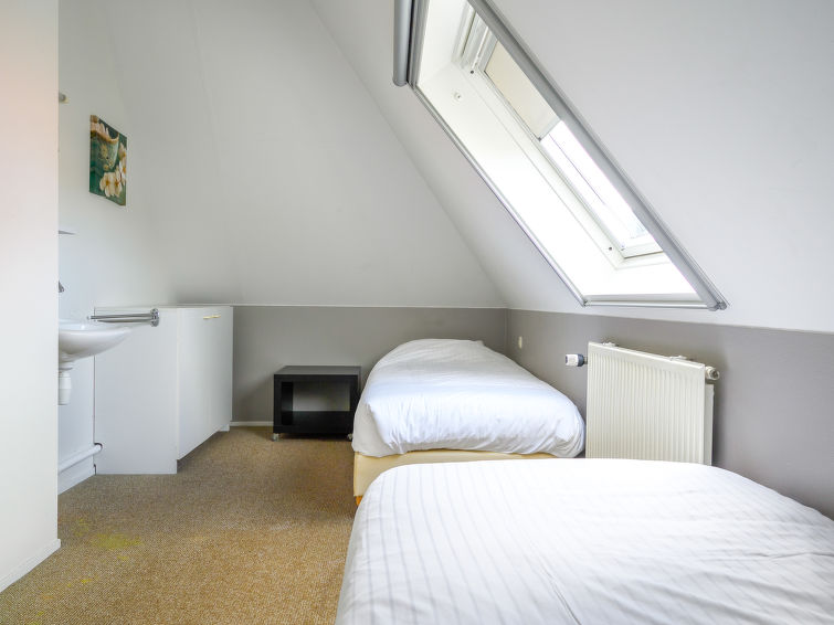 Eernewoude 19 km from Leeuwarden: Large holiday development "Bungalowpark It Wiid". Outside the resort, 3.7 km from the centre of Eernewoude, in a quiet position, on the lake, in the countryside. For shared use: nat. Swimm. Pond, children's playground. In the complex: reception, WiFi, laundry, bicycle rental. Available: boat (extra). Parking at the house. Supermarket 3.6 km. Marina 2.7 km, golf course (18 hole) 25 km. Nearby attractions: Rondvaart 500 m, Nationaalpark De Alde Feanen 500 m, Drachten 27 km, Heerenveen 41 km, Het Friese Museumdorp 49 km. Hiking paths: Wikelslan 4 km, Jan Durkspolder 6 km. Please note: groups of teenagers on request only. Fishing [permit required], private mooring. The photograph shows a typical example. Additional accommodations can be booked. Neighbourhood highly sensitive to noise. Quietness and good behaviour expected. Preference costs 20,25 Euro."Wetter Comfort", 3-room house 75 m2. Comfortable furnishings: entrance hall with separate WC. Living/dining room with dining table and flat screen. Exit to the terrace. Alcove. Open kitchen (dishwasher, electric coffee machine, combination microwave). Shower. Heating. Upper floor: 2 double bedrooms with sloping ceilings, each room with 2 beds. Terrace. Terrace furniture. Facilities: Internet (WiFi, free). Parking at the house. Please note: non-smoking house. Maximum 1 pet/ dog allowed. Smoke alarm. The alcove is a double bed. Instead of an enclosed bedroom, some sleeping areas are located in an open-plan area (gallery, alcove, etc.). Bookings accepted for holiday purposes only.