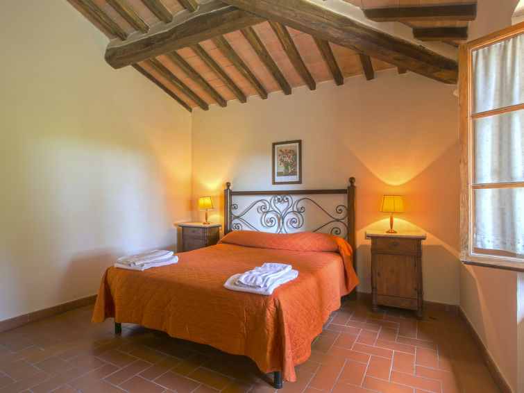 Agriturismo on a vinyard "Campiglia", surrounded by fields and vineyards. 6 apartments in the property. 2 km from the centre of Tavarnelle, 30 km from the centre of Firenze, 40 km from the centre of Siena, in a sunny, elevated position, 90 km from the sea, 90 km from the beach, in the countryside. For shared use: property 20 ha, well-kept garden (not fenced) with lawn and trees, lawn for sunbathing 1'000 m2, swimming pool fenced (15 x 7 m, depth 110 - 140 cm, seasonal availability: 25.Apr. - 31.Oct.). Outdoor shower, patio, garden furniture, barbecue, pool maintenance by the owner/gardener. In the house: washing machine (for shared use). 300 m long motor access (via unmade road). Parking on the premises. Shop 1 km, grocery 1 km, supermarket 1 km, restaurant 1 km, bar 1 km, bakery 1 km, 20 minute walk to the centre, bus stop 2 km, railway station "Barberino Zambra" 10 km, sandy beach "Cecina Mare" 90 km. Golf course (9 hole) 20 km, tennis 1 km, fishing possibilities 5 km. Nearby attractions: San Gimignano 22 km, Certaldo 15 km, Volterra 52 km, Montalcino 85 km. Please note: suitable for families, baby equipment (included). Groups of teenagers on request only. Local sale of farm products. The owner lives on the same property. All houses/apartments are individually designed/furnished."Campiglia", 5-room semi-detached house 150 m2 on 2 levels, on the ground floor. Spacious, renovated, practical and cosy furnishings: living room with 1 double sofabed and satellite TV (flat screen). 1 room with 2 beds (80 cm). Kitchen (oven, dishwasher, 4 gas rings, freezer, electric coffee machine) with open-hearth fireplace and dining table. Shower/bidet/WC. Upper floor: 1 double bedroom with shower/bidet/WC. 1 large double bedroom with 1 sleeping facility (1 x 80 cm, length 180 cm). 1 double bedroom. Shower/bidet/WC. Gas heating (extra). Natural stone floors. Patio, garden 100 m2. Terrace furniture, barbecue, deck chairs. Very beautiful panoramic view of the countryside. Facilities: children's high chair, baby cot for up to 2 year olds. Internet (WiFi, free). Parking space n 3. Please note: suitable for families. Non-smokers only. Maximum 1 pet/ dog allowed. Private entrance. IT048054B535R5VLB7