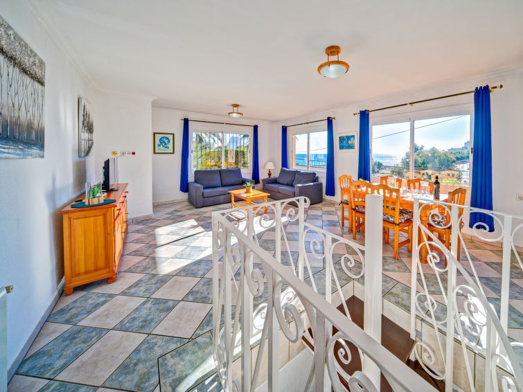 Residence "Canuta Baja". 8 apartments in the residence. In the district of Canuta Baja 3 km from the centre of Calpe, 200 m from the sea, 200 m from the beach. For shared use: property 2'000 m2 (fenced), terraced garden with plants, swimming pool (8 x 3 m, seasonal availability: 01.Jan. - 31.Dec.). Outdoor shower, garden furniture, parking on the premises. Shop 2 km, restaurant 50 m, bus stop 1.4 km, sandy beach "Puerto Blanco" 200 m (small). Nearby attractions: Parque atracciones Terra Mítica 35 km, Parque acuático Aqualandia, y Benidorm Palace 25 km. Hiking paths: Peñon de Ifach 5 km. The owner does not accept any youth groups."Canuta Baja 1", 3-room bungalow 70 m2 on 2 levels. Bright, beautiful furnishings: living/sleeping room with 1 folding bed, dining table, satellite TV, air conditioning and forced-air heating. Kitchen (4 ceramic glass hob hotplates, toaster, kettle, microwave, freezer, electric coffee machine). Exit to the terrace. Sep. WC. On the lower ground floor: (spiral staircase), 1 room with 1 french bed (135 cm, length 190 cm), air conditioning and forced-air heating. Exit to the terrace. 1 room with 2 beds (90 cm, length 190 cm). Bath/WC, shower. 2 terraces. Terrace furniture, barbecue (portable), deck chairs (2). View of the sea. Facilities: washing machine, iron, children's high chair, baby cot for up to 2 year olds, hair dryer. Internet (WiFi, free). Parking (fenced 1 car). Maximum 1 pet/ dog allowed. AT-438370-A // Reg. Nr.: ESFCTU00000302900022615600000000000000000AT-438370-A5
