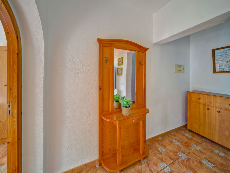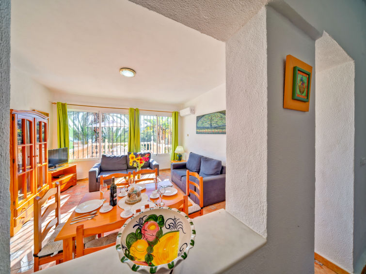 Residence "Canuta Baja". 8 apartments in the residence. In the district of Canuta Baja 3 km from the centre of Calpe, 200 m from the sea, 200 m from the beach. For shared use: property 2'000 m2 (fenced), terraced garden with plants, swimming pool (8 x 3 m, seasonal availability: 01.Jan. - 31.Dec.). Outdoor shower, garden furniture, parking on the premises. Shop 2 km, restaurant 50 m, bus stop 1.4 km, sandy beach "Puerto Blanco" 200 m (small). Nearby attractions: Parque atracciones Terra Mítica 35 km, Parque acuático Aqualandia, y Benidorm Palace 25 km. Hiking paths: Peñon de Ifach 5 km. The owner does not accept any youth groups."Canuta Baja", 3-room apartment 70 m2. Bright, beautiful furnishings: living/dining room with 1 folding bed (80 cm, length 180 cm), dining table, satellite TV, air conditioning and forced-air heating. Exit to the terrace. 1 room with 1 french bed (135 cm, length 190 cm), air conditioning and forced-air heating. 1 room with 2 beds (90 cm, length 190 cm). Kitchen (oven, 4 ceramic glass hob hotplates, toaster, kettle, microwave, freezer, electric coffee machine) with hatch. Bath/WC. Small terrace. Terrace furniture, barbecue (portable). Facilities: washing machine, iron, children's high chair, baby cot for up to 2 year olds, hair dryer. Internet (WiFi, free). Parking (fenced 1 car). Maximum 1 pet/ dog allowed. AT-438372-A // Reg. Nr.: ESFCTU00000302900022615600000000000000000AT-438372-A9