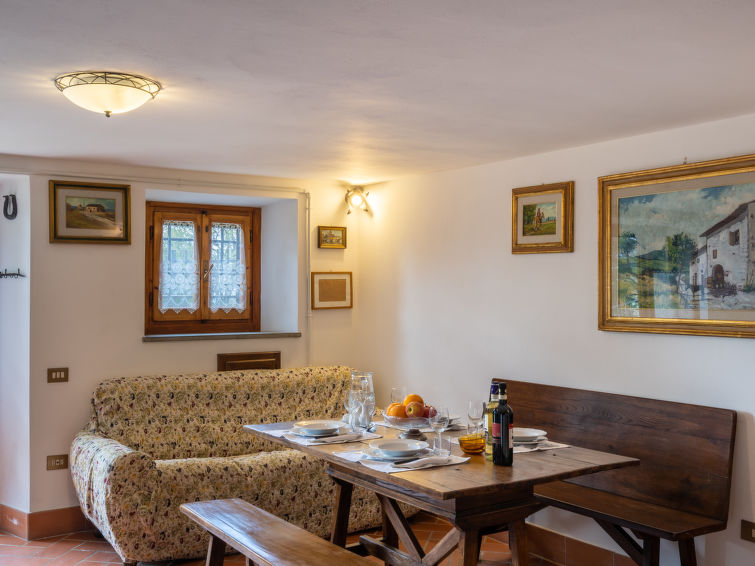 "rustico" cottage "Capanna", 650 m a.s.l.. Property composed of main house and outbuilding, in the hamlet Poggio di Loro with 20 houses 4 km from the centre of Loro Ciuffenna. Private: property 1'500 m2 (fenced), terraced garden lawn and trees, meadow, swimming pool (8 x 4 m, seasonal availability: 01.May. - 30.Sep.). Outdoor shower, pool house with cooking stove, terrace (18 m2), garden furniture, barbecue. 50 m long narrow motor access (via unmade road). Parking (for 2 cars) on the premises. Supermarket 6 km, bus stop 5 km, railway station "Montevarchi" 20 km. Nearby attractions: Arezzo 35 km, Firenze 60 km, Siena 65 km. Please note: car recommended.5-room house 120 m2 on 2 levels. Partly with sloping ceilings, rustic and cosy furnishings: living/dining room with open-hearth fireplace, dining table and satellite TV. Exit to the garden. Living/sleeping room with 1 double sofabed, open-hearth fireplace and satellite TV. Exit to the terrace. Small, open kitchen (dishwasher, 4 gas rings, electric coffee machine). Shower, sep. WC. Upper floor: (spiral staircase) living/sleeping room with 1 double sofabed. Exit to the terrace. (spiral staircase), 2 double bedrooms. 2 showers/bidet/WC. Oil heating (extra). Natural stone floors. Facilities: washing machine, baby cot for up to 2 year olds. Parking (fenced 2 cars) at the house. Please note: non-smoking house. No internal connecting door between the separated properties. No mandatory extra charges to be paid on-site except for local tax. Bed layout is flexible. There are more sleeping options available than the maximum number of people allowed which may, however, not be exceeded. IT051020C2VJFIVZOT