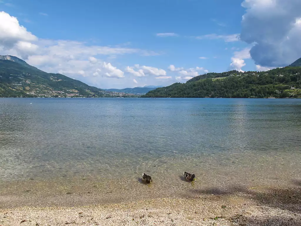 Calceranica 3 km from Caldonazzo: Rustic terraced house "Casa al Mulino", 480 m a.s.l., 2 storeys, semi-detached, surrounded by trees and meadows. 300 m from the centre of Calceranica, on the outskirts, 6 km from the centre of Levico, 19 km from the centre of Trento, 750 m from the lake, in a cul-de-sac. Private: natural state property 340 m2 with meadow, orchard. In the house: storage room for bicycles. 100 m long bumpy motor access to the house. Parking (for 2 cars) at the house on the premises. Supermarket 450 m, restaurant 1.2 km, bus stop "Linea B401 (Trento-Levico)" 500 m, railway station "Calceranica (Trento-Bassano)" 600 m, pebble beach "Spiaggia alle Barche" 1 km, indoor swimming pool 6 km, thermal baths "Vetriolo Terme" 19 km. Golf course (6 hole) 9 km, walking paths from the house 50 m. Nearby attractions: Ciclabile/Radweg/Cycle Path Valsugana 300 m, Mountainbike: Giro dei Laghi (24 km) 300 m, Giro Antiche Tradizioni (28 km) 2.5 km, Giro delle Pozze (21, Vetriolo) 19 km. Hiking paths: Caldonazzo: Sentiero della Pace 2.5 km, Tenna: Arbore 8 km, Monte Panarotta (2002 m) 24 km.3-room terraced house 100 m2 on 2 levels. Spacious, practical furnishings: living/sleeping room with 1 double sofabed, dining table and satellite TV. Exit to the garden. Kitchen (oven, dishwasher, 4 ceramic glass hob hotplates, kettle, freezer, electric coffee machine) with small dining table. Bath/bidet/WC. Upper floor: 2 double bedrooms. Shower/bidet/WC. Oil heating. Parquet floors. Terrace 15 m2, patio. Terrace furniture, barbecue (portable), deck chairs. View of the mountains. Facilities: washing machine, iron, children's high chair, baby cot (extra). Please note: non-smokers only. No mandatory extra charges to be paid on-site except for local tax. Bedlinen, final cleaning and all energy costs are included. IT022032C25UYD62NZ