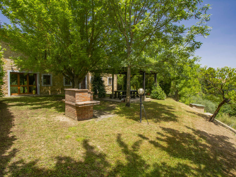 Beautiful farmhouse "Casa dei Ciliegi", from the 18th century, renovated, surrounded by fields and vineyards. 4 km from the centre of Gambassi / Castelfiorentino, 14 km from the centre of S. Gimignano, 7 km from the centre of Certaldo, in a secluded, quiet, sunny position, in the countryside. Private: property 5 ha, beautiful garden to relax, swimming pool (5 x 10 m, depth 140 cm, seasonal availability: 24.Apr. - 09.Oct.). Outdoor shower, table tennis, terrace, garden furniture, barbecue, children's playground (swing). In the house: table football, heating available only from 01.Nov. - 31.Mar. (extra). Linen change weekly. Motor access to the house (300 m via unmade road). Parking on the premises. Shop 4 km, supermarket 5 km, restaurant 4 km, bus stop 2 km, railway station "Castelfiorentino" 4 km. Golf course 18 km, tennis 4 km, riding stable 4 km. Nearby attractions: Firenze 45 km, Siena 50 km, San Gimignano 15 km.8-room house 230 m2 on 2 levels, on the ground floor. Renovated, rustic and cosy furnishings: open living room. Exit to the garden. Open large dining room with satellite TV (flat screen). Exit to the garden, to the loggia. Kitchen (4 hot plates, oven, dishwasher, microwave, freezer, electric coffee machine) with open-hearth fireplace. Exit to the garden. Shower/WC. Upper floor: 2 double bedrooms, each room with shower/WC. 1 double bedroom. 2 rooms, each room with 2 beds (length 200 cm). 1 room with 3 beds (length 200 cm). Bath/WC, shower/WC. 2 terraces, porch. Barbecue. Very beautiful view of the countryside. Facilities: washing machine, safe, children's high chair, baby cot for up to 2 year olds. Maximum 1 pet/ dog allowed. It is possible to book the villa for ten people and the bedroom with three beds is closed. When there are less than the maximum number of guests staying at the property, not all of the bedrooms will be available for use. IT048020C2YC3A5ZIP