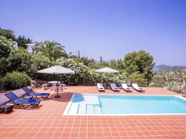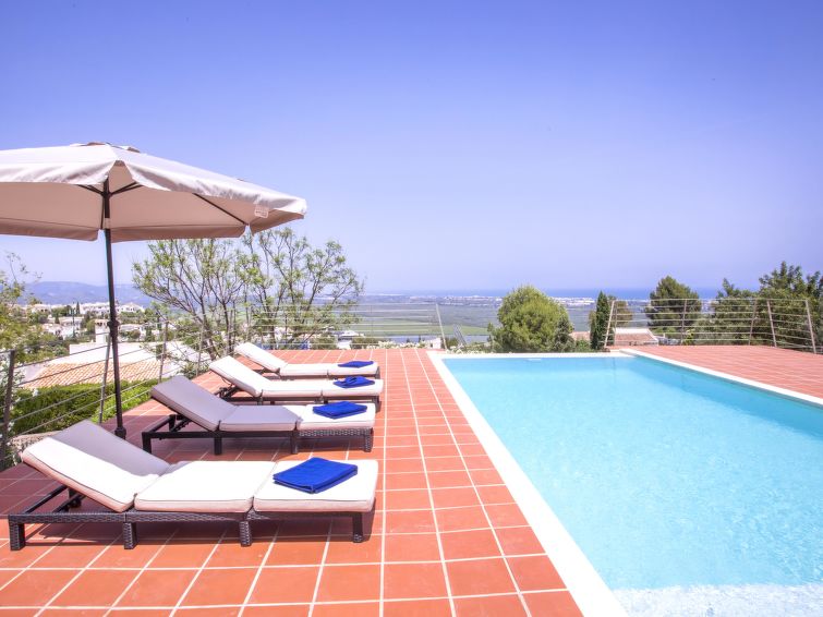 Very large, very beautiful, very comfortable house "La Torre", 2 storeys. In the resort Monte Pego, in a quiet, sunny position, 7 km from the sea, 7 km from the beach. Private: beautiful, well-kept garden with lawn, swimming pool angular (10 x 4 m, depth 40 - 210 cm, seasonal availability: 01.Jan. - 31.Dec.) with internal staircase. Garden furniture, barbecue, parking (for 3 cars) on the premises, single garage. Supermarket 5.7 km, shopping centre 10 km, restaurant 950 m, café 1.1 km, bus stop 7.4 km, sandy beach "Les Deveses" 7 km. Sports harbour 17 km, surf school 8 km. The owner does not accept any youth groups."Casa La Torre", 4-room house 140 m2 on 2 levels. Spacious and bright, very comfortable and stylish furnishings: living/dining room with satellite TV, air conditioning and forced-air heating. Exit to the patio, to the swimming pool. 1 room with 1 french bed (160 cm, length 200 cm), shower/WC, air conditioning and forced-air heating. 1 room with 1 french bed (160 cm, length 190 cm), shower/WC, electric heating and air conditioning. Large, open kitchen (oven, dishwasher, 3 ceramic glass hob hotplates, toaster, kettle, microwave, freezer, electric coffee machine). Upper floor: 1 room with 1 french bed (180 cm, length 200 cm), shower/WC and air conditioning. Large terrace. Terrace furniture, barbecue, deck chairs, sitting area. Marvellous view of the sea, the mountains and the valley. Facilities: washing machine, iron, children's high chair, baby cot for up to 2 year olds, hair dryer. Internet (WiFi, free). Parking. Please note: non-smoking house. To be taken into account: The pool has a jet stream system and it is also an infinity pool. VT-479719A